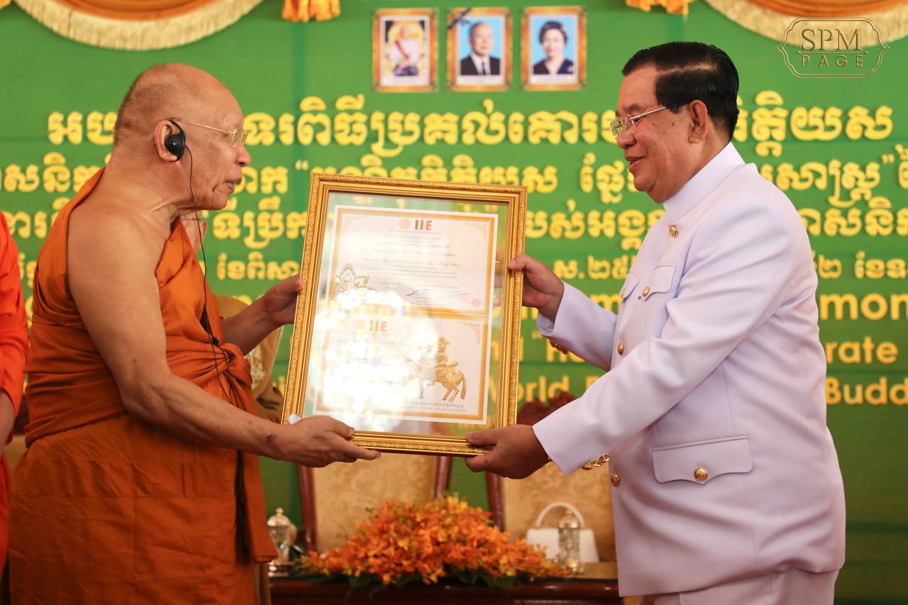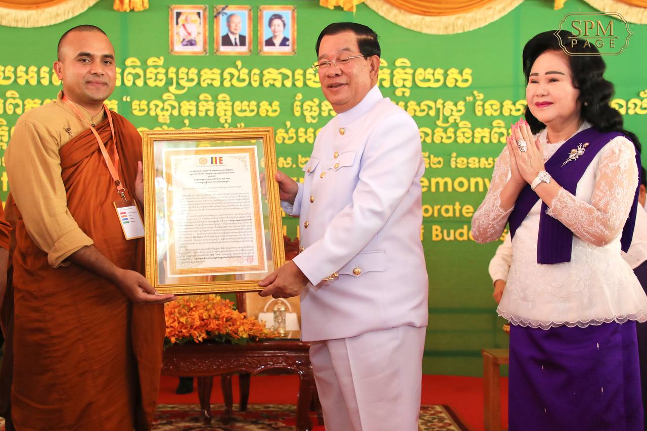 សម្តេចតេជោ ហ៊ុន សែន មានប្រសាសន៍ថា ការផ្តល់គោរមងារ និងសញ្ញាបត្រកិត្តិយសនាពេលនេះ គឺជាកិត្តិយសដ៏ឧត្តុង្គឧត្តមសម្រាប់សម្តេច និងប្រជាជនកម្ពុជាទាំងអស់ និងបានបង្ហាញអំពីទំនាក់ទំនងដែលមិនអាច កាត់ថ្លៃបានរវាងព្រះពុទ្ធសាសនា សន្តិភាព ការអភិវឌ្ឍ និង សន្តិសហវិជ្ជមាន ប្រកបដោយសុខដុមរមនានៃមនុស្សជាតិ ។