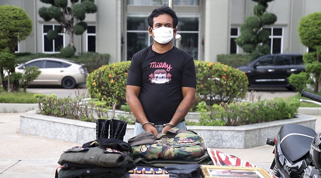 ជនសង្ស័យឈ្មោះ ពេជ្រ និវត្តន៍ ភេទប្រុស អាយុ៣៨ ជាជនស៊ីវិល មានមុខរបបមិនពិតប្រាកដ បានសារភាពថាខ្លួន ពិតជាបានក្លែងបន្លំឯកសណ្ឋាន កងរាជអាវុធហត្ថ និងយោធា ដើម្បីធ្វើសកម្មភាព ឃាត់ប្រជាពលរដ្ឋតាមផ្លូវ ឆែករកគ្រឿងញៀន និង គំរាមកំហែងជម្រិតទារប្រាក់ ពិតប្រាកដមែន ដោយធ្វើសកម្មភាពជាមួយ បក្ខពួកម្នាក់ទៀត ឈ្មោះ កី បច្ចុប្បន្នបានគេចខ្លួនបាត់ទៅហើយ ព្រមជាមួយគ្នានោះ សមត្ថកិច្ចអាវុធហត្ថ ក៏បានចាប់យកវត្ថុតាងជាច្រើនរួមមាន៖ ឯកសណ្ឋានយោធាប៉ារ៉ា ០១កំប្លេ, ឯកសណ្ឋានអាវុធហត្ថ ០២កំប្លេ, អាវកាក់អាវុធហត្ថ ០១, ស្លាកលោហ្គោអាវុធហត្ថ ០១, ស្បែកជើងកវែង ០១គូ, ស្រោមកាំភ្លើង ០២, ស័ក្កិស្មា ០២គូ, មួកប៉េរ៉េ ០២, ត្រាឈ្មោះ ០៤, តាំប៉ុង០២, រូបថតតូចធំ ០២សន្លឹក, មេដាយ ០១, កាបូបប៉ារ៉ា ០១, ម៉ូតូចំនួន០១គ្រឿងម៉ាក ណៃហត ពណ៌ខ្មៅ ពាក់ស្លាកលេខ កម្ពុជា ០.០០០០, ទូរស័ព្ទដៃ ០២គ្រឿង, និងស្លាក កងរាជអាវុហត្ថ ០១ផ្ទាំង ផងដែរ។