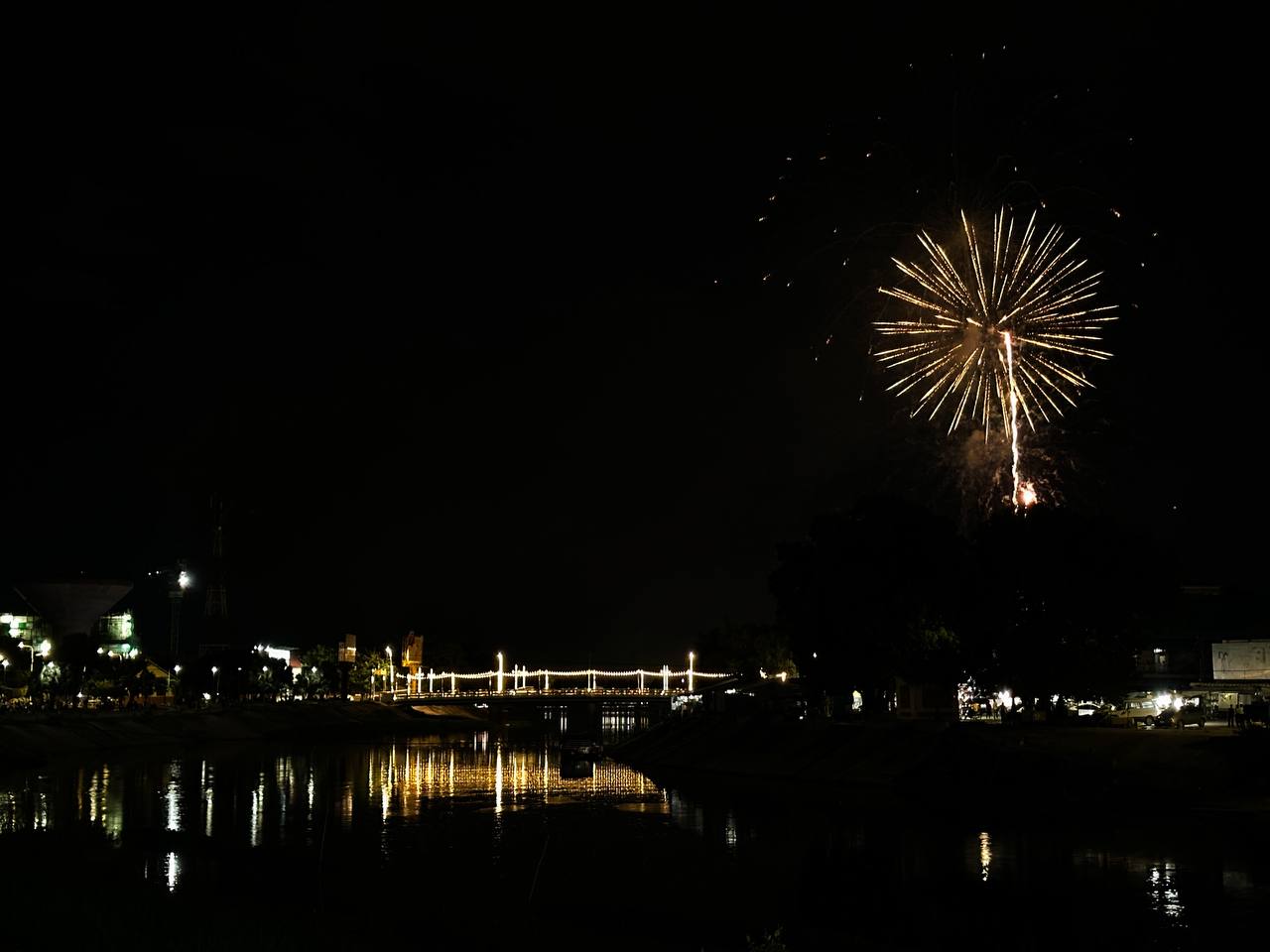 ទិដ្ឋភាពបាញ់កាំជ្រួច ដ៏ស្រស់ស្អាតនាប្រលប់ ថ្ងៃទី១៧ ខែតុលា ឆ្នាំ២០២៤ ក្នុងព្រឹត្តិការណ៍ប្រណាំងទូកថ្ងៃទី១ ក្រុងតាខ្មៅ ខេត្តកណ្ដាល