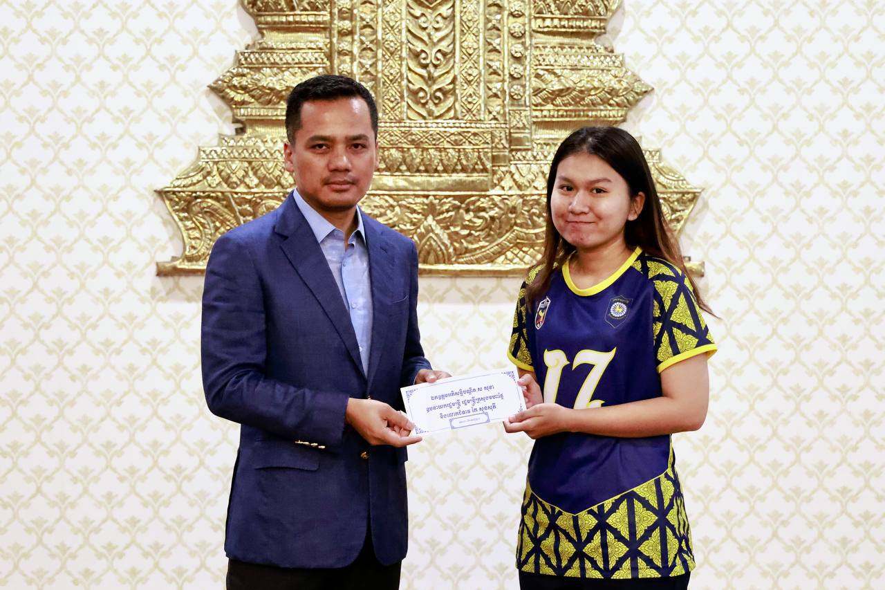 ក្នុងឱកាសនោះ ដើម្បីលើកទឹកចិត្តដល់ប្រតិភូ គ្រូបង្វឹក គ្រូជំនួយ និងកីឡាការិនី ទាំង ១៧រូប ឯកឧត្តមអភិសន្តិបណ្ឌិត ក៏បានឧបត្ថម្ភថវិកាក្នុងម្នាក់ៗ ចំនួន ២០០ដុល្លារផងដែរ៕