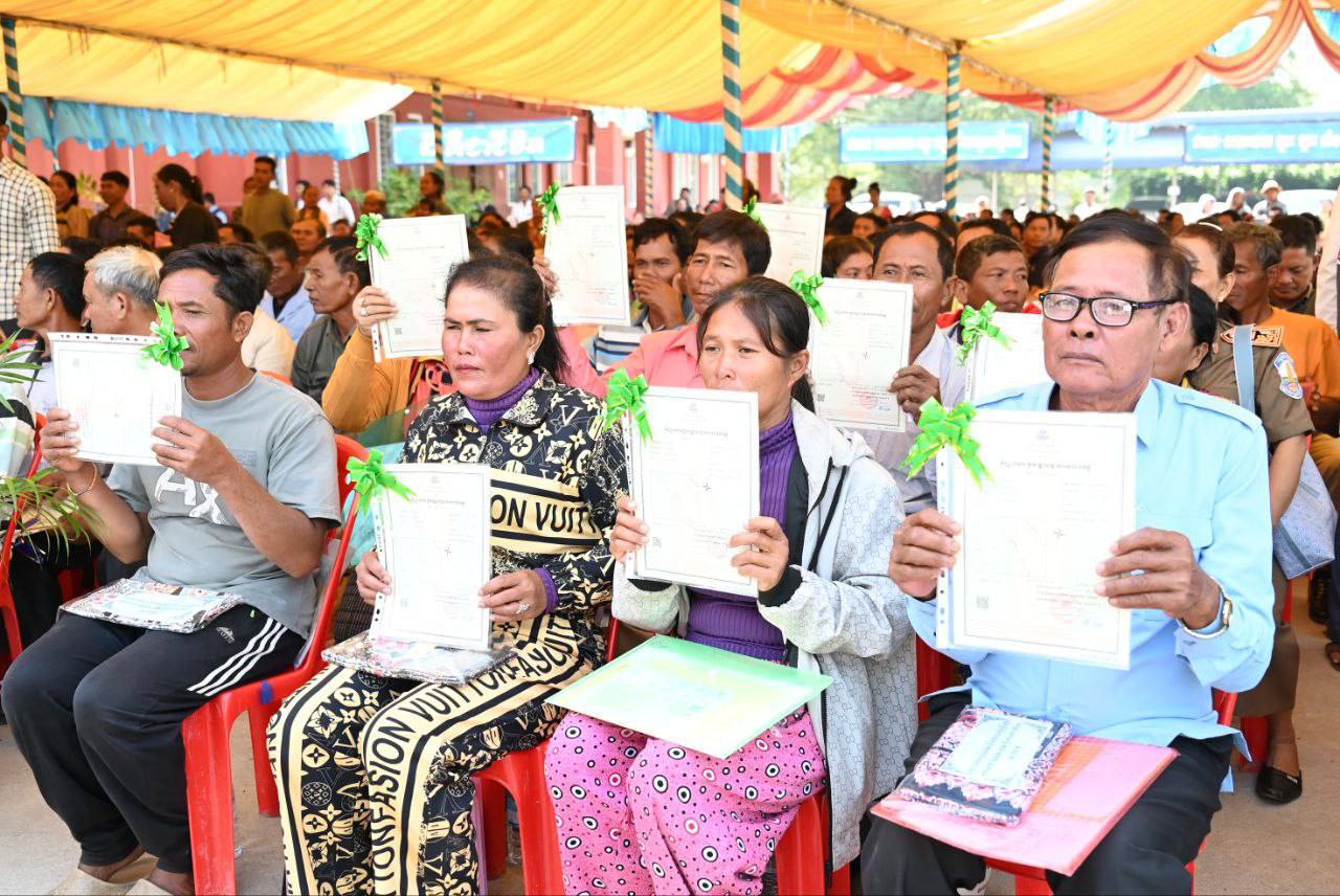 សម្តេចមហាមន្ត្រី គុយ សុផល អញ្ជើញប្រគលវិញ្ញាបនបត្រសម្គាល់ម្ចាស់អចលនវត្ថុជូនប្រជាពលរដ្ឋចំនួន ១ ២៨៨ គ្រួសារ ស្មើនឹង ១ ៨៦០ បណ្ណ ដែលអញ្ជេីញមកពីភូមិចំនួន ៤ ស្ថិតក្នុងឃុំកំពង់ព្រះគគីរ ស្រុកបរិបូណ៌ ខេត្តកំពង់ឆ្នាំង។