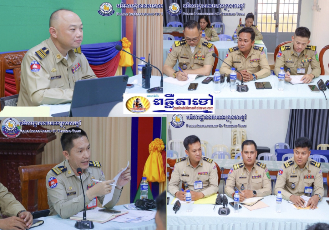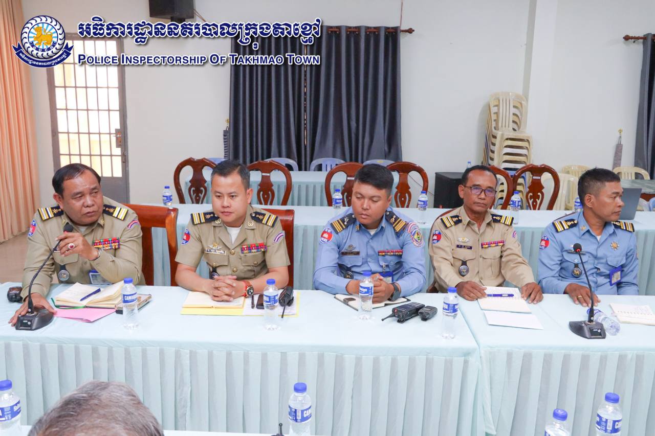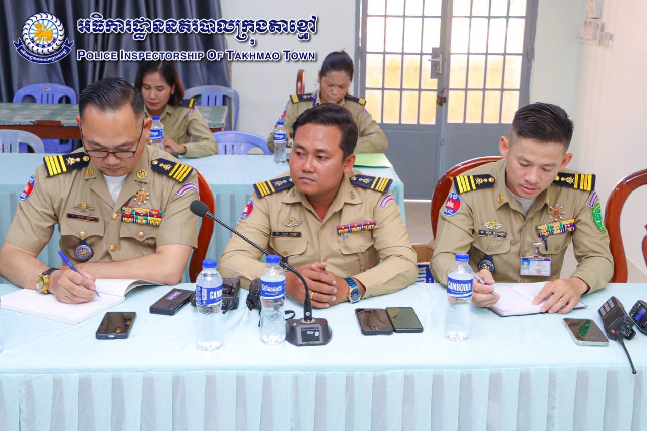 លោកវរសេនីយ៍ឯក យី វណ្នដា អធិការនៃអធិការដ្ឋាននគរបាលក្រុងតាខ្មៅ រសៀលថ្ងៃទី២៥ ខែកុម្ភៈ ឆ្នាំ២០២៥ បានអញ្ជើញដឹកនាំកិច្ចប្រជុំបូកសរុបសភាពការណ៍លទ្ធផលនៃកិច្ចប្រតិបត្តិការការពារសន្តិសុខ រក្សាសណ្តាប់ធ្នាប់ សុវត្ថិភាពសង្គម ប្រចាំខែកុម្ភៈ និងលើកទិសដៅការងារបន្តសម្រាប់ខែមីនា ឆ្នាំ២០២៥។