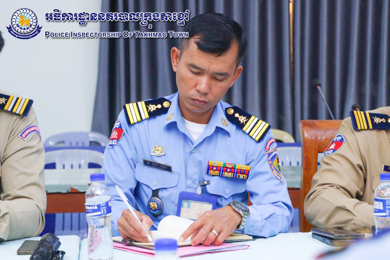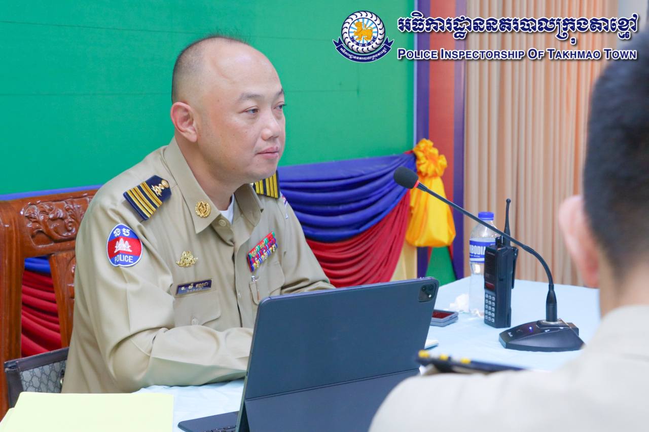 លោកវរសេនីយ៍ឯក យី វណ្នដា អធិការនៃអធិការដ្ឋាននគរបាលក្រុងតាខ្មៅដឹកនាំកិច្ចប្រជុំបូកសរុបសភាពការណ៍លទ្ធផល….