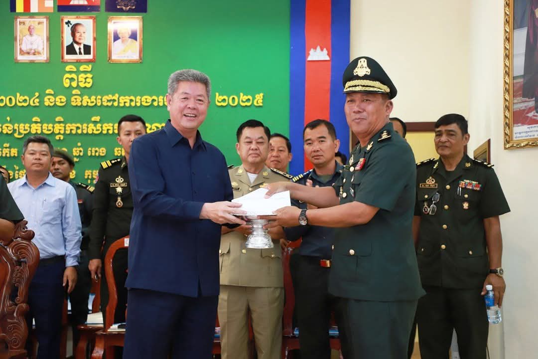ខេត្តកណ្ដាល៖ ព្រឹកថ្ងៃទី២៨ ខែកុម្ភៈ ឆ្នាំ២០២៥ នៅតំបន់ប្រតិបត្តិការសឹករងកណ្ដាល បានរៀបចំពិធីផ្សព្វផ្សាយរបាយការណ៍បូកសរុបលទ្ធផលការងារយោធាសន្តិសុខ ឆ្នាំ២០២៤ និងទិសដៅអនុវត្តបន្ត ឆ្នាំ២០២៥ ក្រោមអធិបតីភាពឯកឧត្តម គួច ចំរើន អភិបាល នៃគណៈអភិបាលខេត្តកណ្តាល និងឯកឧត្តម ឧត្តមសេនីយ៍ទោ ទី សេរីវុឌ្ឍ មេបញ្ជាការរងយោធភូមិភាគពិសេស។
