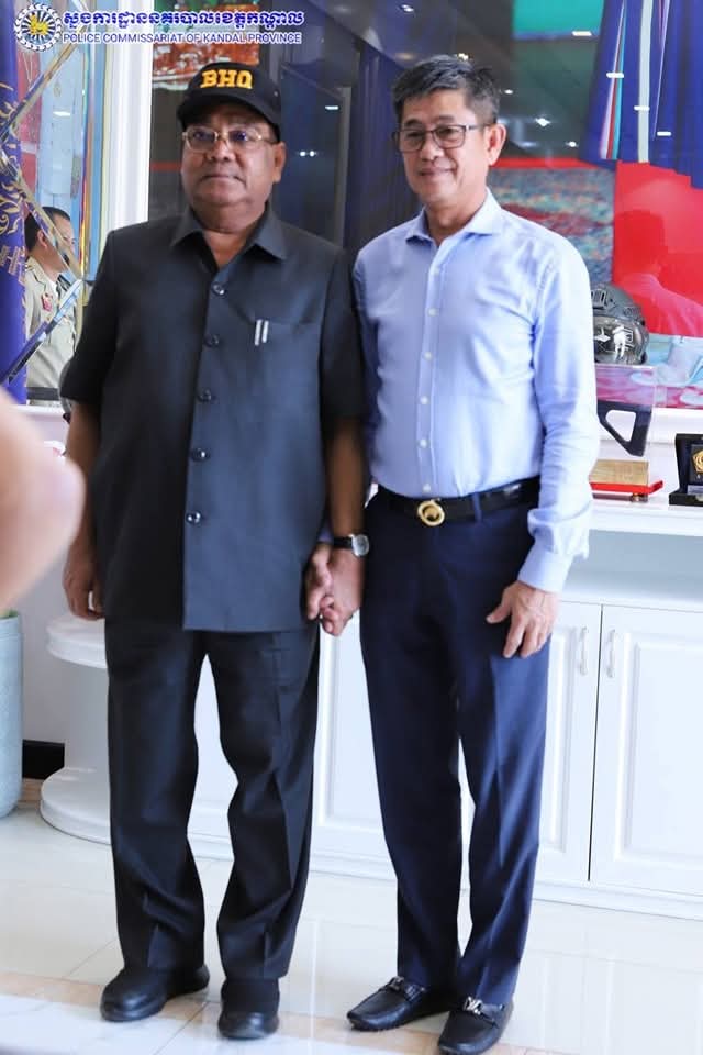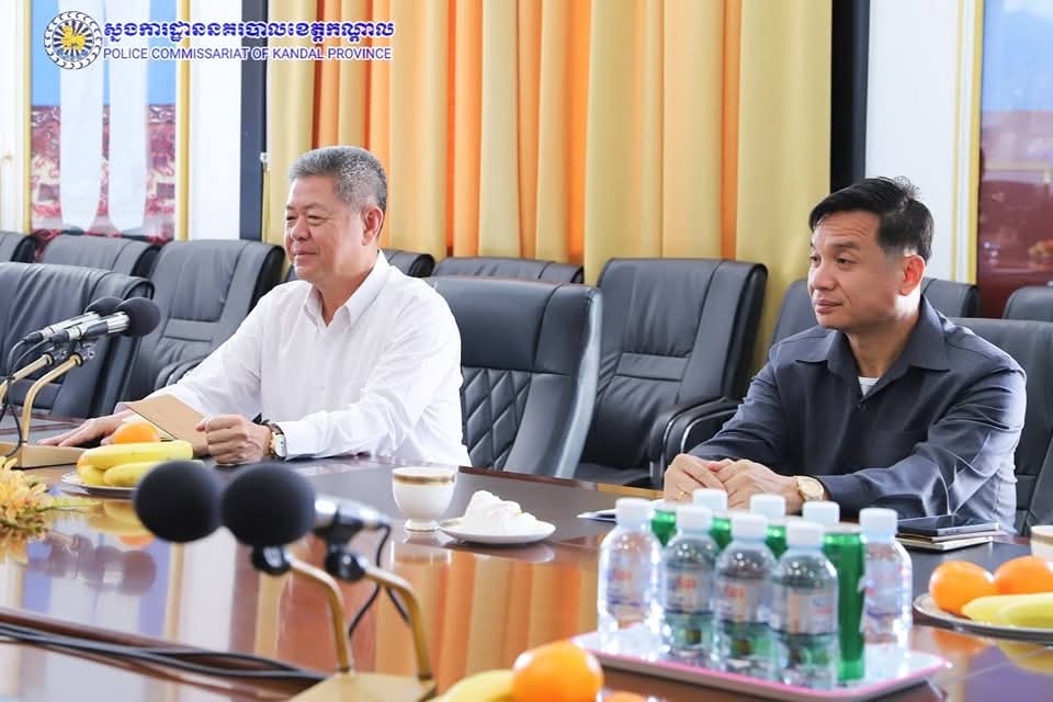 លោកឧត្តមសេនីយ៍ទោ ឈឿន សុចិត្ត ស្នងការនគរបាលខេត្តកណ្តាល អមដំណើរ ឯកឧត្តម គួច ចំរើន អភិបាល នៃគណៈអភិបាលខេត្តកណ្តាល អញ្ជើញជួបសម្តែងការគួរសមជាមួយ ឯកឧត្តម នាយឧត្តមសេនីយ៍ កិត្តិសង្គហបណ្ឌិត ហ៊ីង ប៊ុនហៀង