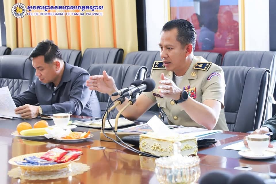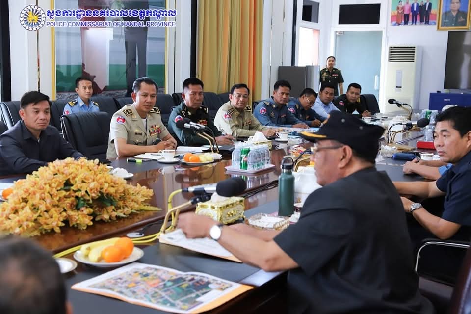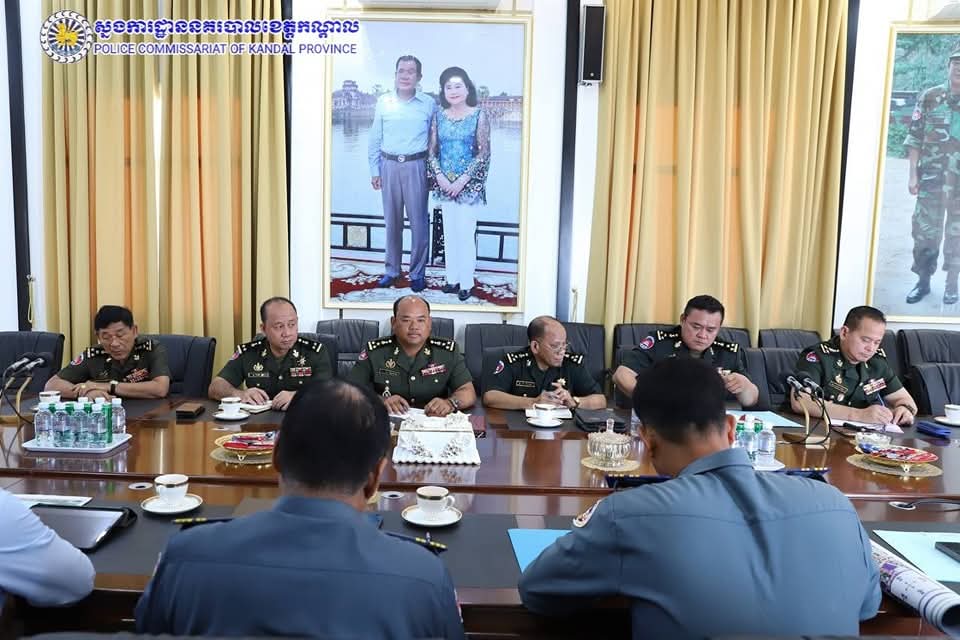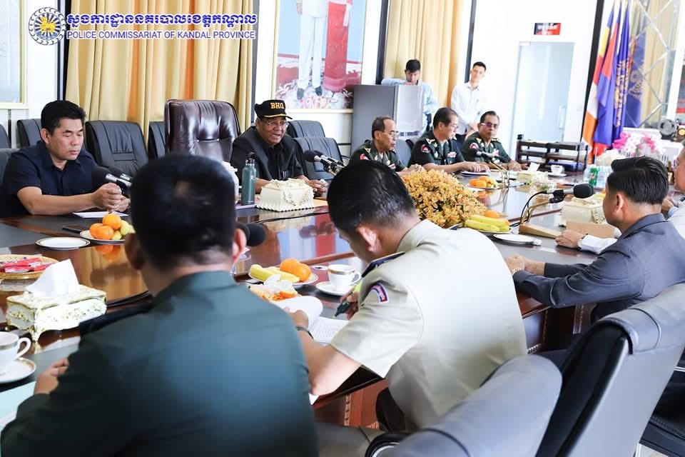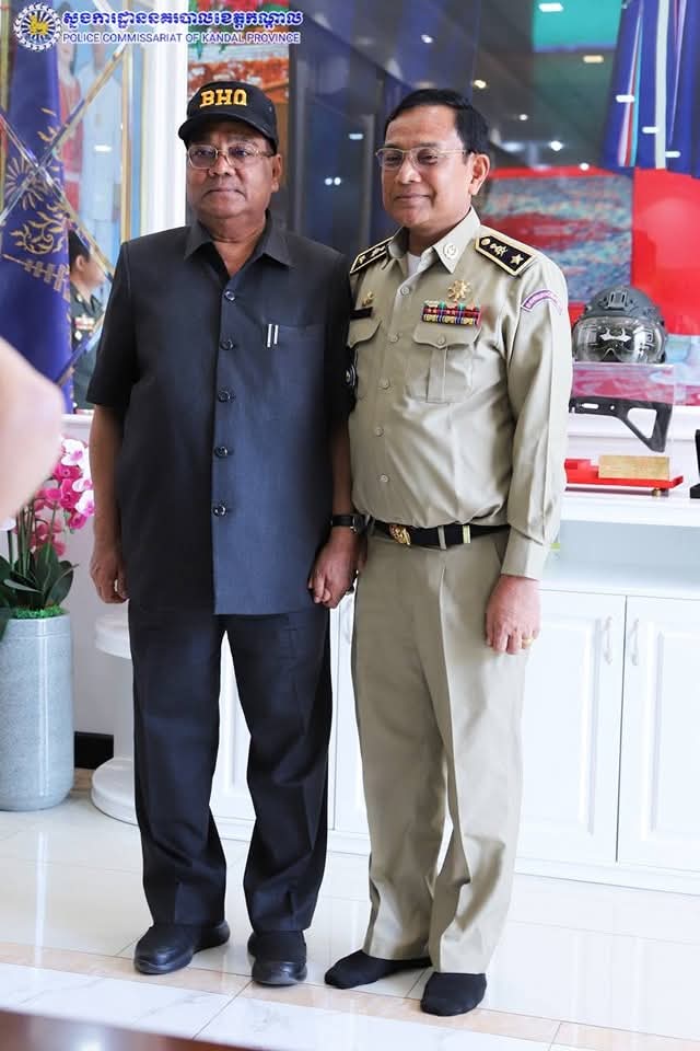 លោកឧត្តមសេនីយ៍ទោ ឈឿន សុចិត្ត ស្នងការនគរបាលខេត្តកណ្តាល អមដំណើរ ឯកឧត្តម គួច ចំរើន អភិបាល នៃគណៈអភិបាលខេត្តកណ្តាល អញ្ជើញជួបសម្តែងការគួរសមជាមួយ ឯកឧត្តម នាយឧត្តមសេនីយ៍ កិត្តិសង្គហបណ្ឌិត ហ៊ីង ប៊ុនហៀង អគ្គមេបញ្ជាការរង នៃកងយោធពលខេមរភូមិន្ទ និងជាមេបញ្ជាការ បញ្ជាការដ្ឋានអង្គរក្ស នៅទីបញ្ជាការដ្ឋានអង្គរក្សទួលក្រសាំង ក្រុងតាខ្មៅ។