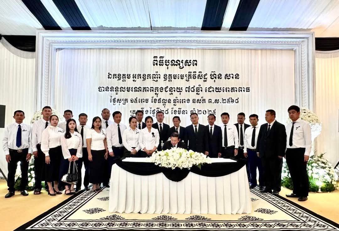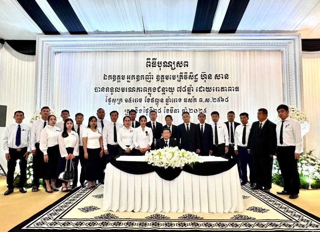 ឯកឧត្តម ថុង ណារុងប្រធានក្រុមប្រឹក្សាខេត្ត និងលោកជំទាវ មិថុនា ភូថង អភិបាល នៃគណៈអភិបាលខេត្តកោះកុង អញ្ជើញចូលរួមគោរពវិញ្ញាណក្ខន្ធសព ឯកឧត្តមអ្នកឧកញ៉ា ឧត្តមមេត្រីវិសិដ្ឋ ហ៊ុន សាន រដ្ឋលេខាធិការក្រសួងសាធារណការ និងដឹកជញ្ជូន ដែលបានទទួលមរណភាពនៅថ្ងៃទី២៨ ខែមីនា ឆ្នាំ២០២៥ វេលាម៉ោង ២:២៧នាទីទៀបភ្លឺដោយរោគាពាធ នៅសង្កាត់បឹងកក់២ ខណ្ឌទួលគោក រាជធានីភ្នំពេញ។