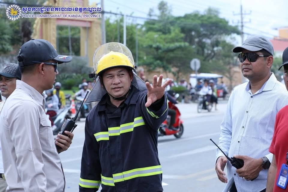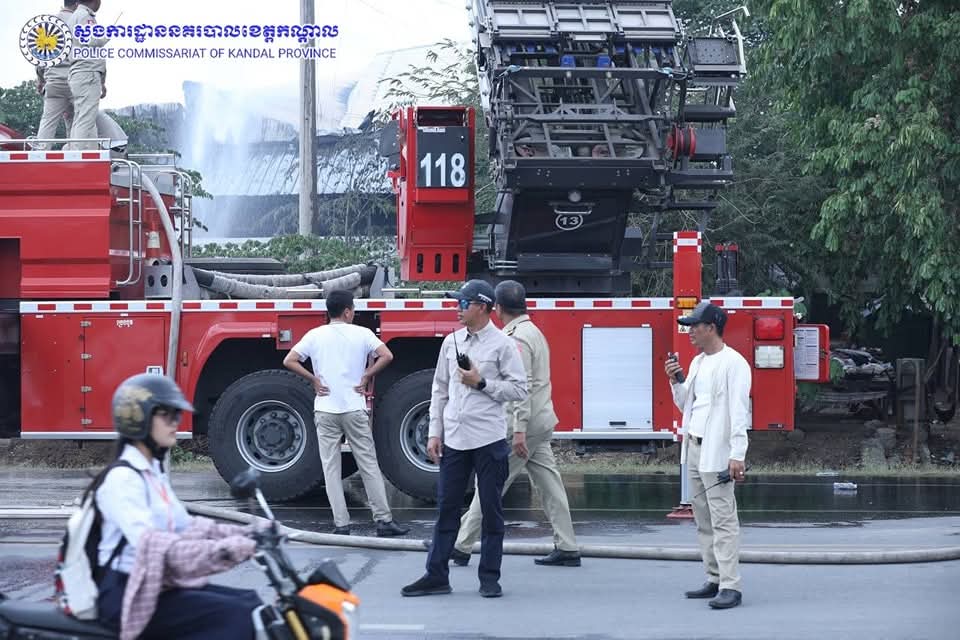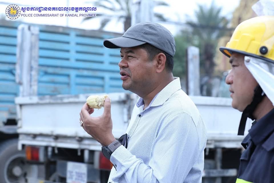 លោកឧត្តមសេនីយ៍ទោ ឈឿន សុចិត្ត ស្នងការនគរបាលខេត្តកណ្តាល បានអមដំណើរ ឯកឧត្តម គួច ចំរើន អភិបាលខេត្តនៃគណៈអភិបាលខេត្តកណ្តាល អញ្ជើញចុះត្រួតពិនិត្យទីតាំង ឆេះឃ្លាំងស្តុក សម្ភារៈជ័រធ្វើស័ង្កសី និងផ្ទះប្រជាពលរដ្ឋ ដែលបានកើតហេតុតាំងពីវេលាម៉ោង៩:៥០នាទី នៅចំណុចភូមិថ្លើក ឃុំពើក ស្រុកអង្គស្នួល ខេត្តកណ្ដាល។