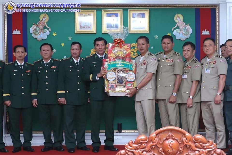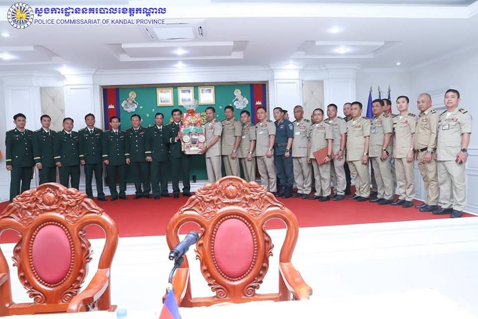 លោកឧត្តមសេនីយ៍ទោ ឈឿន សុចិត្ត ស្នងការនគរបាលខេត្តកណ្តាល បានដឹកនាំប្រតិភូស្នងការដ្ឋានទទួលស្វាគមន៍ ភាគីយោធាការពារព្រំដែនខេត្តអានយ៉ាង នៃសាធារណរដ្ឋសង្គមនិយមវៀតណាម អញ្ជើញមកជូនពរក្នុងឱកាសបុណ្យចូលឆ្នាំថ្មីប្រពៃណីជាតិខ្មែរ ឆ្នាំម្សាញ់ សប្តស័ក ព.ស.២៥៦៩ គ.ស.២០២៥ ដល់ស្នងការដ្ឋាននគរបាលខេត្តកណ្តាល នៃព្រះរាជាណាចក្រកម្ពុជា។