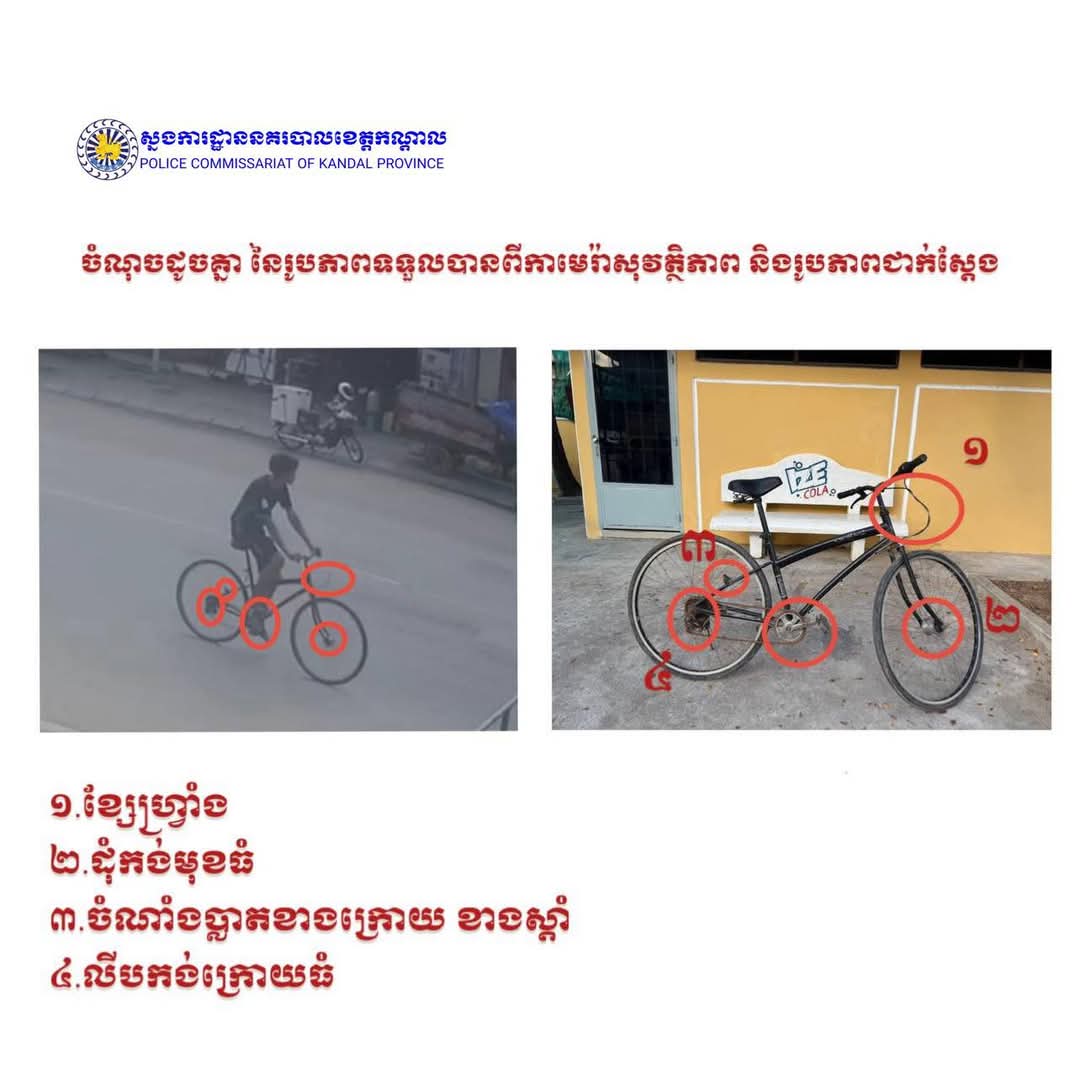១/កង់តួប្រុស ពណ៌ខ្មៅ ០១គ្រឿង ដែលជាមធ្យោបាយរបស់ជនសង្ស័យជិះធ្វើសកម្មភាពដើរលួច។