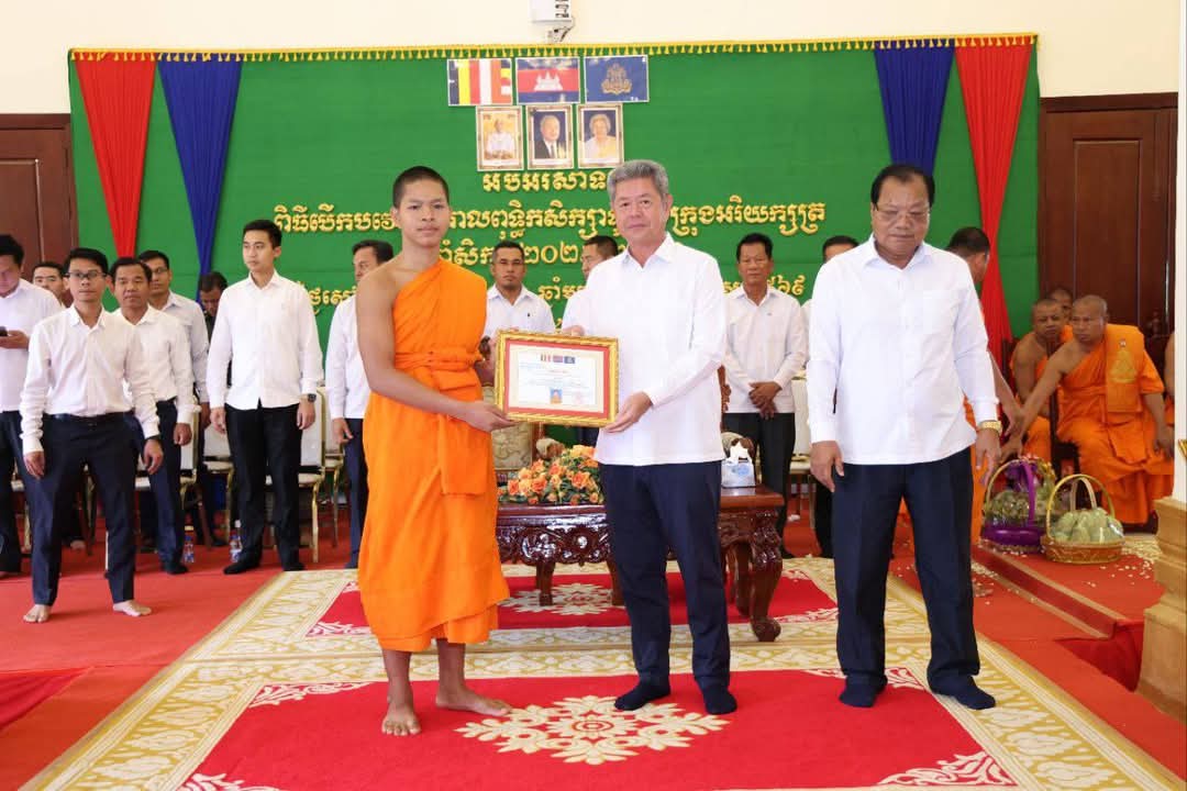 ខេត្តកណ្តាល៖ ព្រឹកថ្ងៃទី២៤ ខែឧសភា ឆ្នាំ២០២៥ នៅបរិវេណវត្តស្វាយជ្រំ បានរៀបចំពិធីបើកបវេសនកាលពុទ្ធិកសិក្សាទូទាំងក្រុងអរិយក្សត្រ ឆ្នាំសិក្សា២០២៥-២០២៦ ក្រោមព្រះរាជាធិបតី សម្ដេចព្រះ ឧត្ដមមុនី ជា សំអាង ព្រះមេគណខេត្តកណ្ដាល និងជាព្រះចៅអធិរាជវត្តសុវណ្ណវារី ហៅវត្តព្រែកតាទែន និងគណៈអធិបតីភាពឯកឧត្ដម នូ សាខន ប្រធានក្រុមប្រឹក្សាខេត្ត និងឯកឧត្ដម គួច ចំរើន អភិបាល នៃគណៈអភិបាលខេត្តកណ្ដាល។