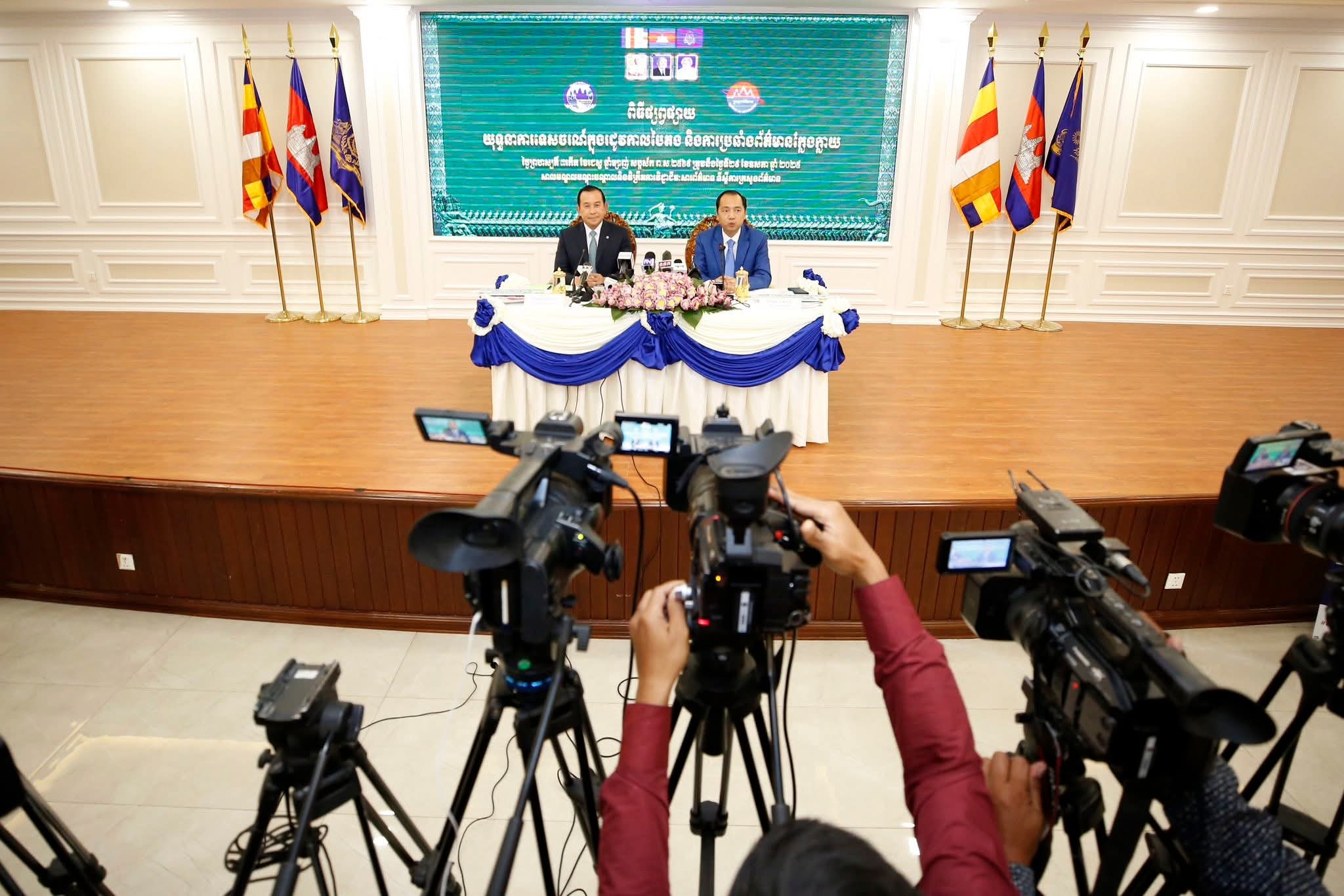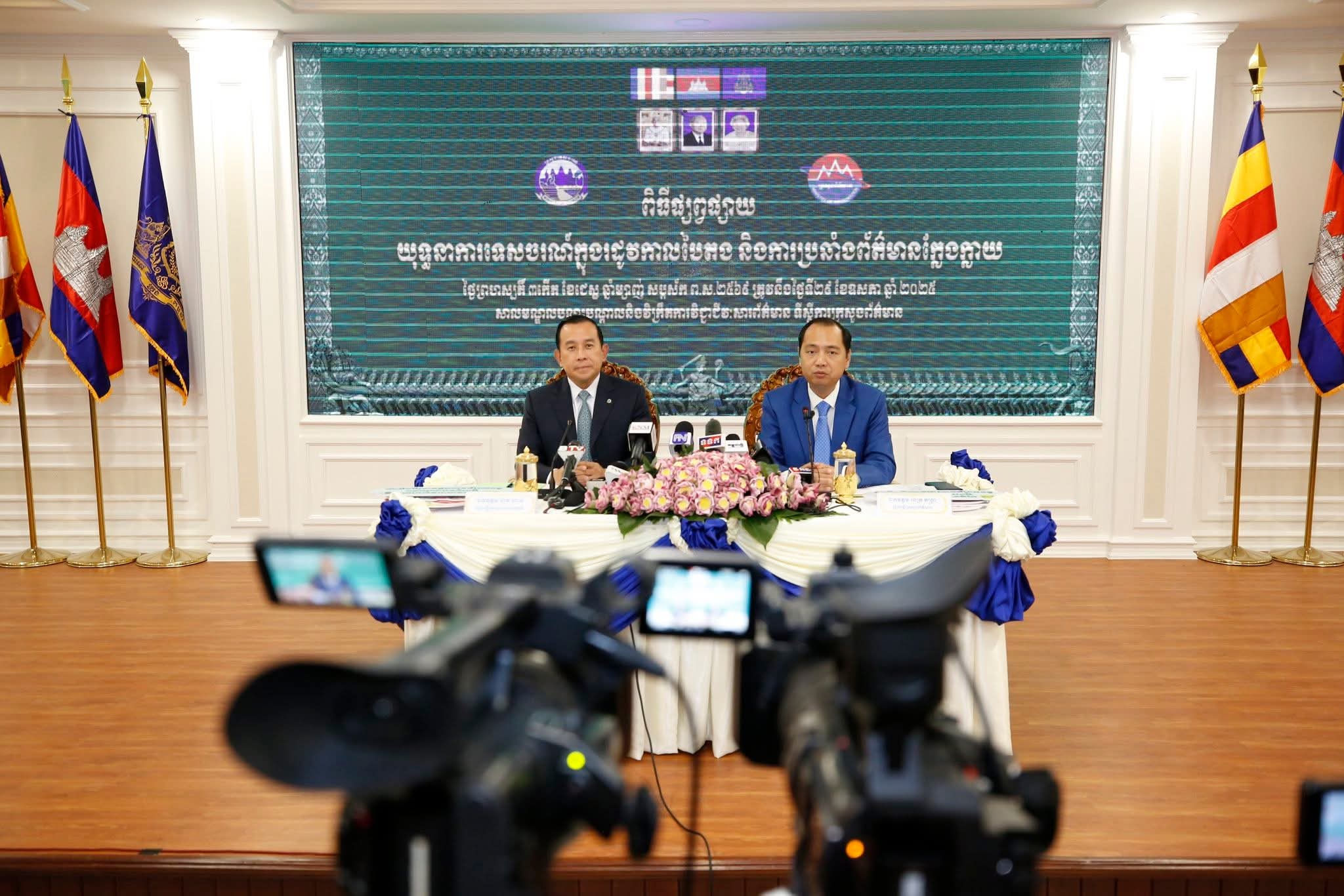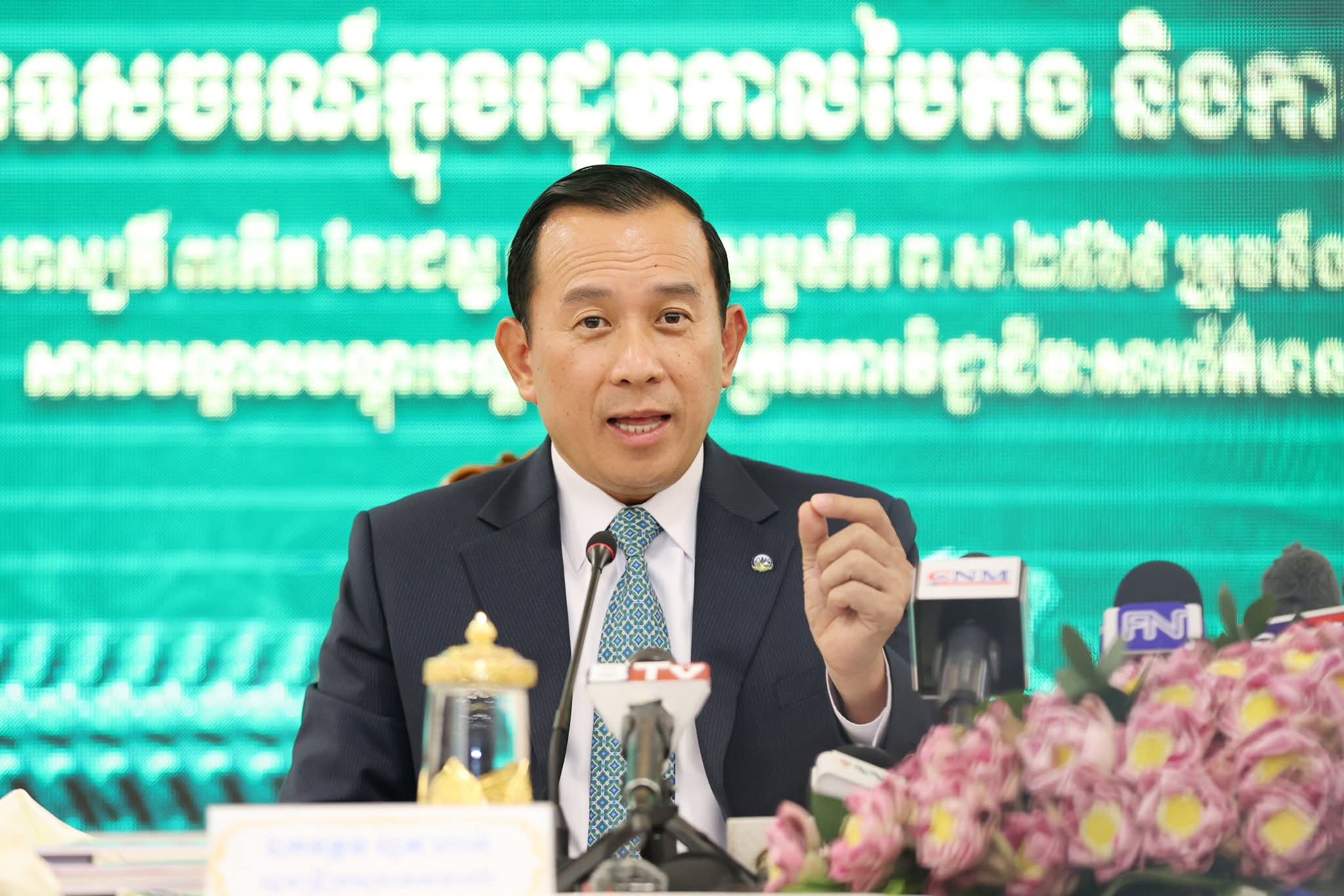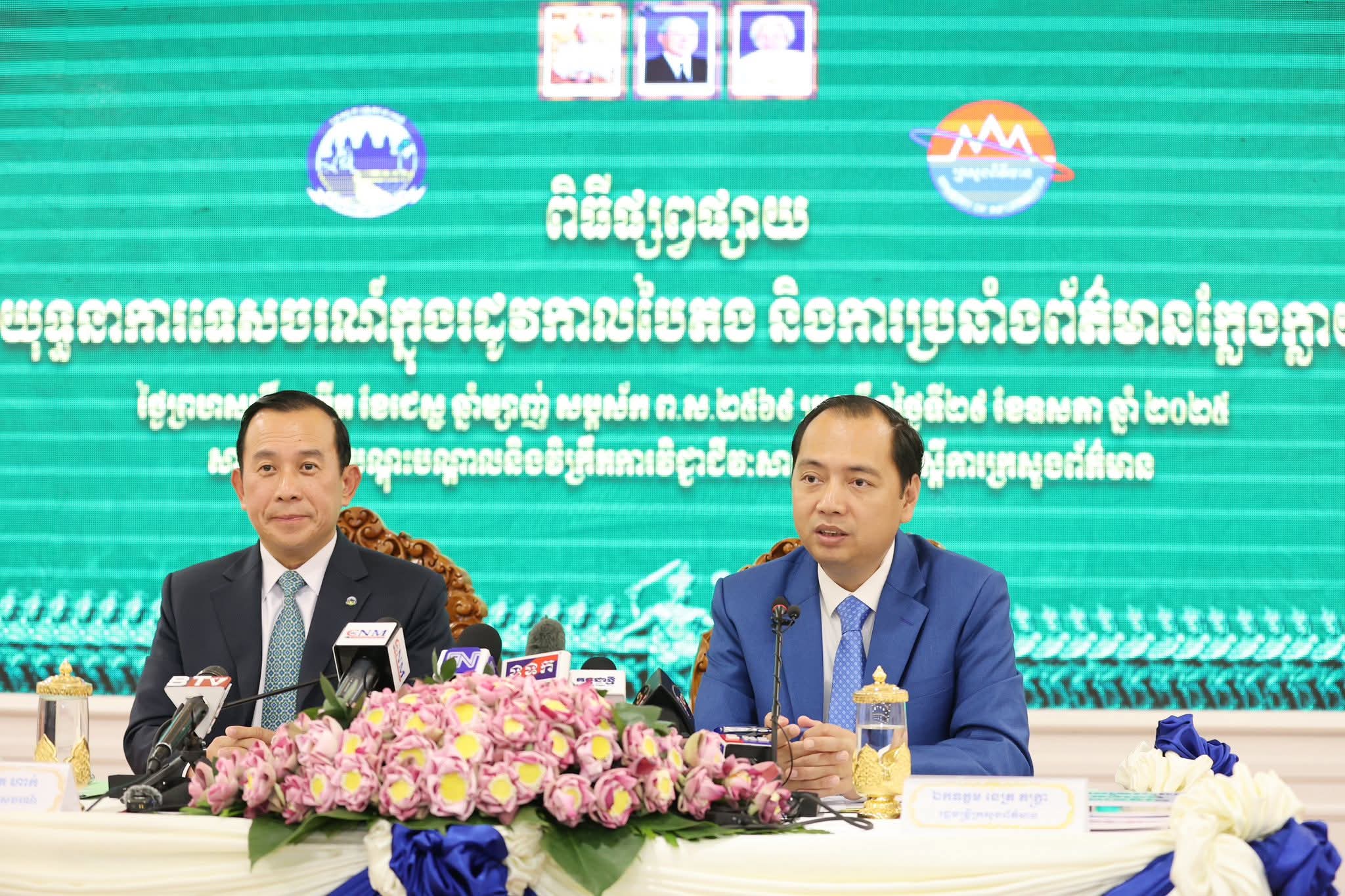 ឯកឧត្តម នេត្រ ភក្ត្រា រដ្ឋមន្ត្រីក្រសួងព័ត៌មាន និងឯកឧត្តម ហួត ហាក់ រដ្ឋមន្ត្រីក្រសួងទេសចរណ៍ អញ្ជើញធ្វើសន្និសីទសារព័ត៌មាន «ផ្សព្វផ្សាយយុទ្ធនាការទេសចរណ៍ ក្នុងរដូវកាលបៃតង (Green Season) និងការប្រឆាំងព័ត៌មានក្លែងក្លាយ» ដែលប្រព្រឹត្តទៅនៅក្រសួងព័ត៌មាន នារសៀលទី២៩ ខែឧសភា ឆ្នាំ២០២៥។