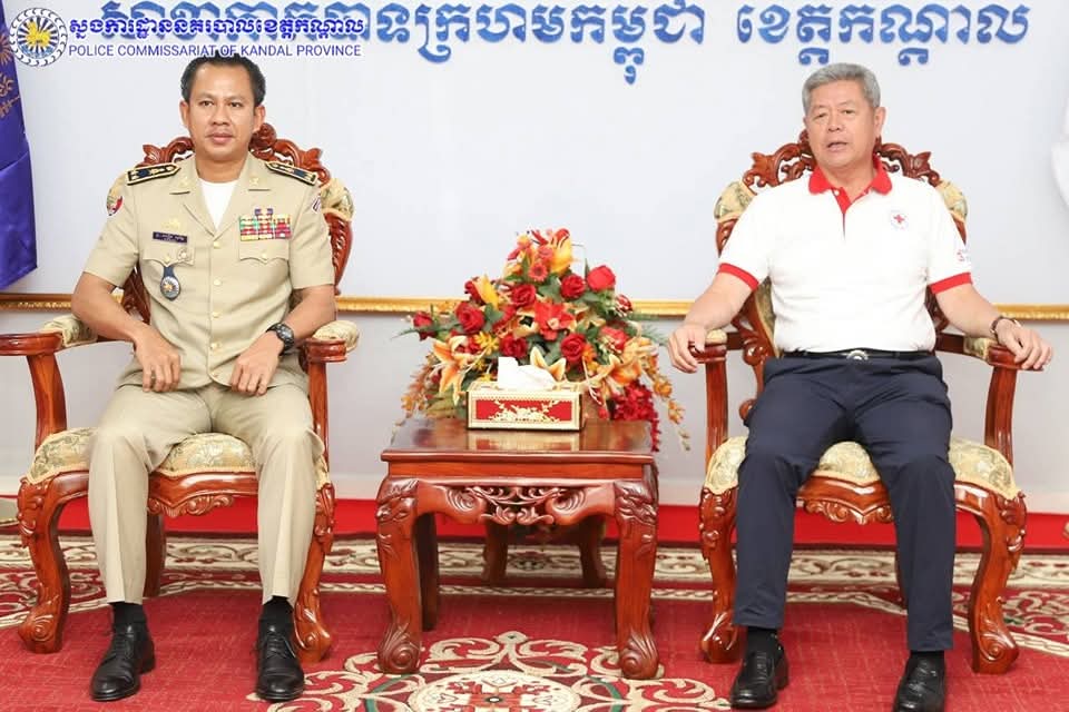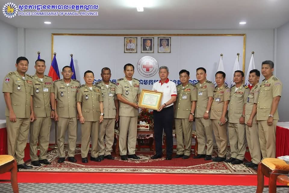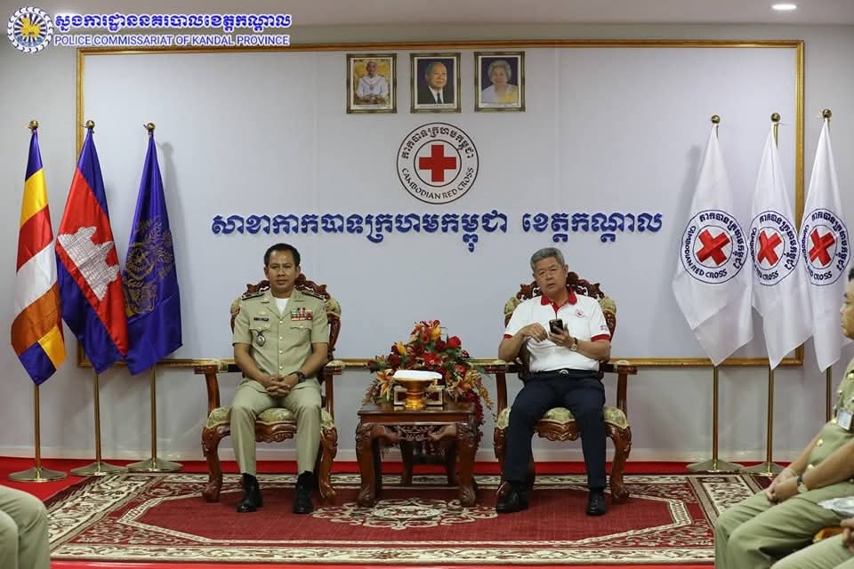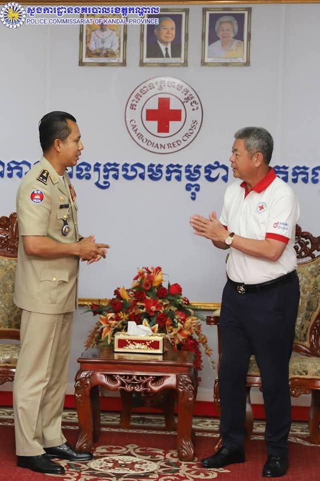 លោកឧត្តមសេនីយ៍ទោ ឈឿន សុចិត្ត ស្នងការនគរបាលខេត្តកណ្តាល បានដឹកនាំប្រតិភូស្នងការដ្ឋាននាំយកមូលនិធិកាកបាទក្រហម ជូនដល់សាខាកាកបាទក្រហមកម្ពុជាខេត្តកណ្តាល ក្រោមអធិបតីភាពដ៏ខ្ពង់ខ្ពស់ ឯកឧត្តម គួច ចំរើន អភិបាល នៃគណៈអភិបាលខេត្តកណ្តាល និងជាប្រធានគណៈកម្មាធិការសាខាកាកបាទក្រហមកម្ពុជាខេត្តកណ្តាល។