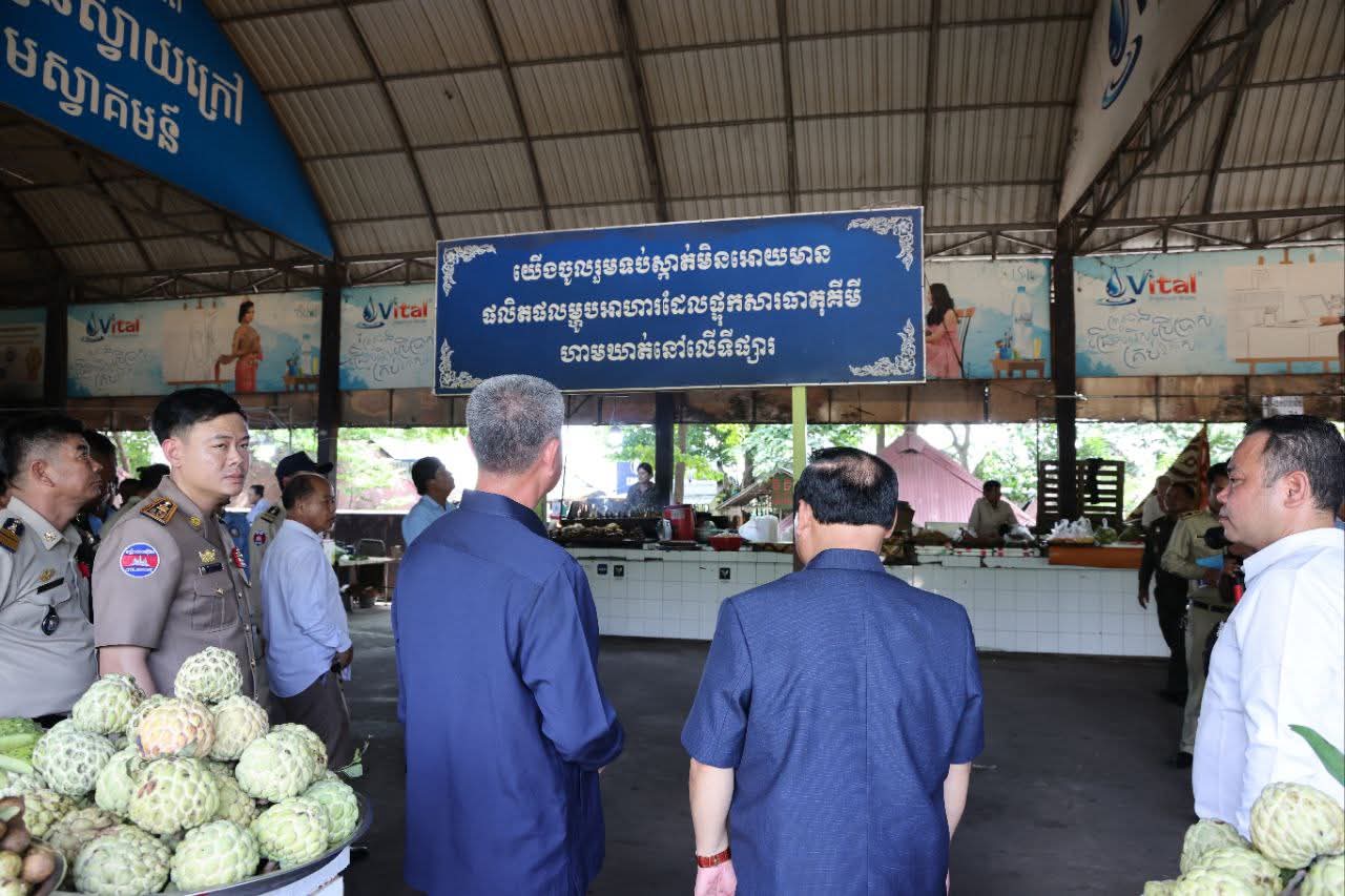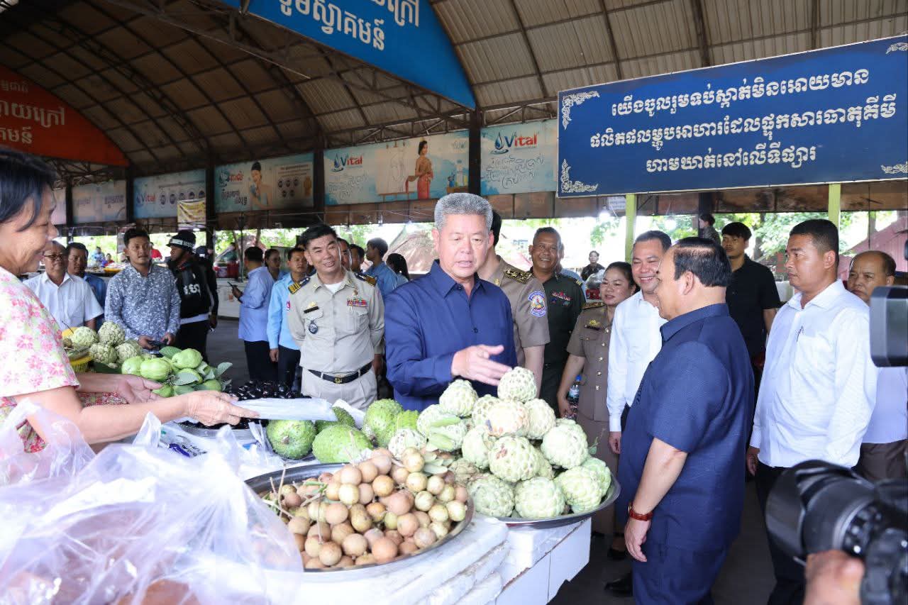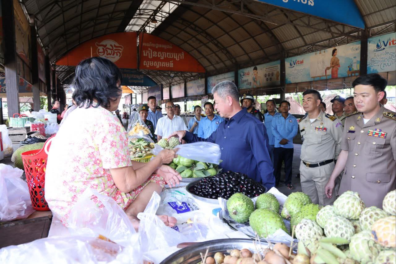 ខេត្តកណ្ដាល៖ នាព្រឹកថ្ងៃទី៩ ខែមិថុនា ឆ្នាំ២០២៥ ឯកឧត្តម ម៉ក់ ពេជ្ជរិទ្ធ រដ្ឋលេខាធិការក្រសួងពាណិជ្ជកម្ម និងឯកឧត្តម គួច ចំរើន អភិបាល នៃគណៈអភិបាលខេត្តកណ្ដា រួមជាមួយអាជ្ញាធរស្រុកកៀនស្វាយ អញ្ជើញចុះពិនិត្យស្ថានភាពជាក់ស្ដែង និងសំណេះសំណាលជាមួយអាជីវករ កំពុងប្រកបរបរលក់ដូរនៅរមណីយដ្ឋានកៀនស្វាយក្រៅ។