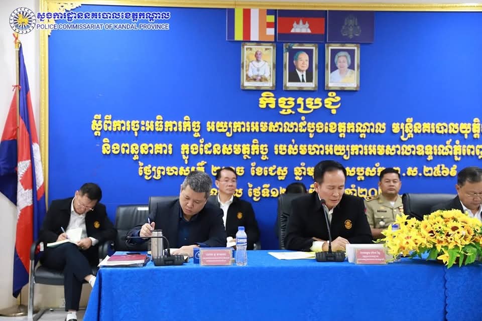 លោកឧត្តមសេនីយ៍ទោ ឈឿន សុចិត្ត ស្នងការនគរបាលខេត្តកណ្តាល បានចាត់លោកឧត្តមសេនីយ៍ត្រី ឡាក់ ម៉េងធី ស្នងការរងជាតំណាង រួមជាមួយនឹងលោកស្នងការរងទទួលផែនការងារជំនាញពាក់ព័ន្ធចំនួន០២រូប ចូលរួមក្នុងកិច្ចប្រជុំស្តីពីការចុះអធិការកិច្ចនៅអយ្យការអមសាលាដំបូង មន្ត្រីនគរបាលយុត្តិធម៌ និងពន្ធនាគារ ក្នុងដែនសមត្ថកិច្ចរបស់សាលាឧទ្ធរណ៍ភ្នំពេញ ប្រចាំឆ្នាំ២០២៥ ក្រោមអធិបតីភាពដ៏ខ្ពង់ខ្ពស់ ឯកឧត្តម ហ៊ាន រិទ្ធ អគ្គព្រះរាជអាជ្ញារង និងឯកឧត្តម មាស សុភក្តិ អគ្គព្រះរាជអាជ្ញារង នៃមហាអយ្យការអមសាលាឧទ្ធរណ៍ភ្នំពេញ នៅសាលប្រជុំសាលាដំបូងខេត្តកណ្តាល។