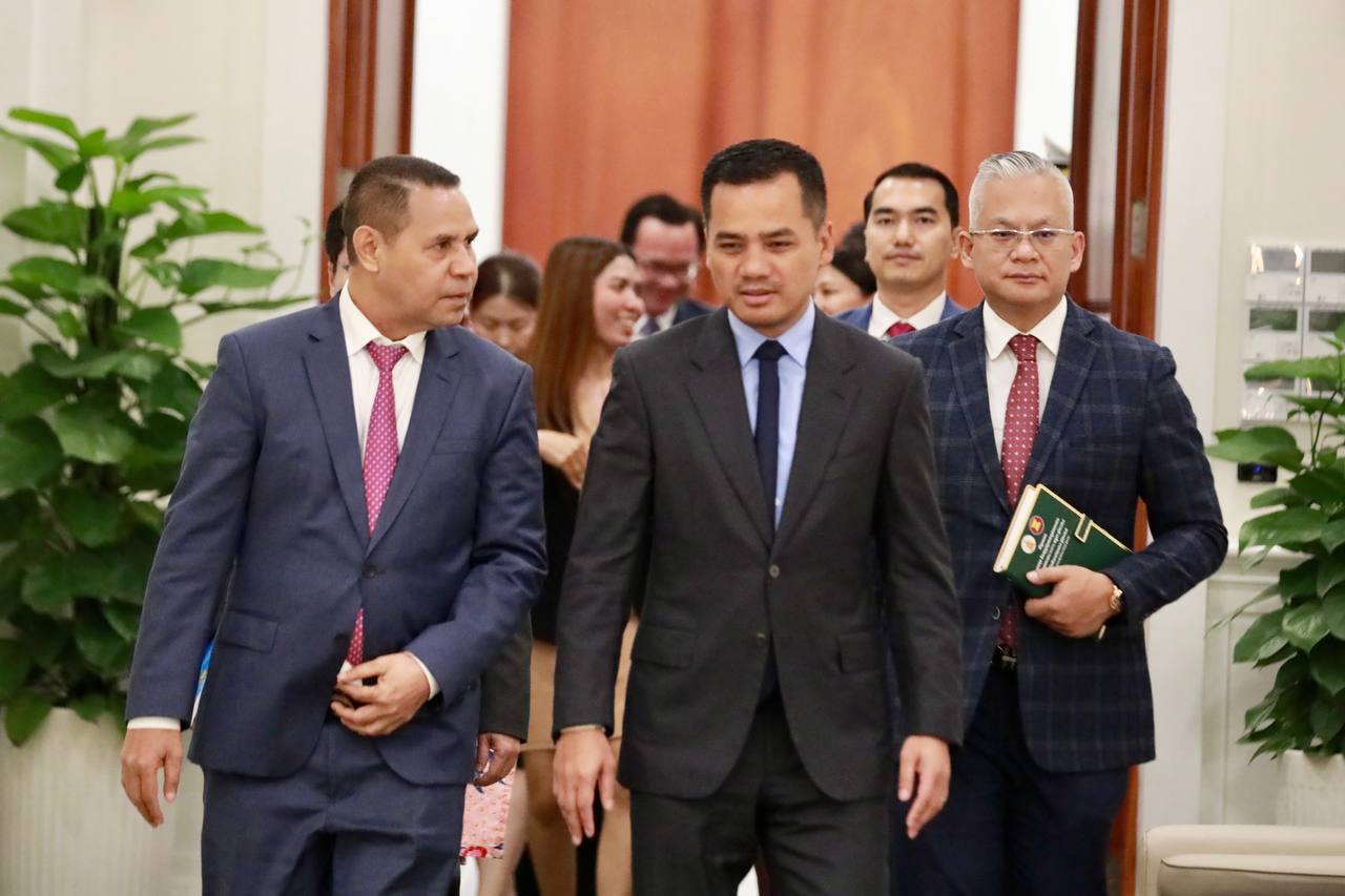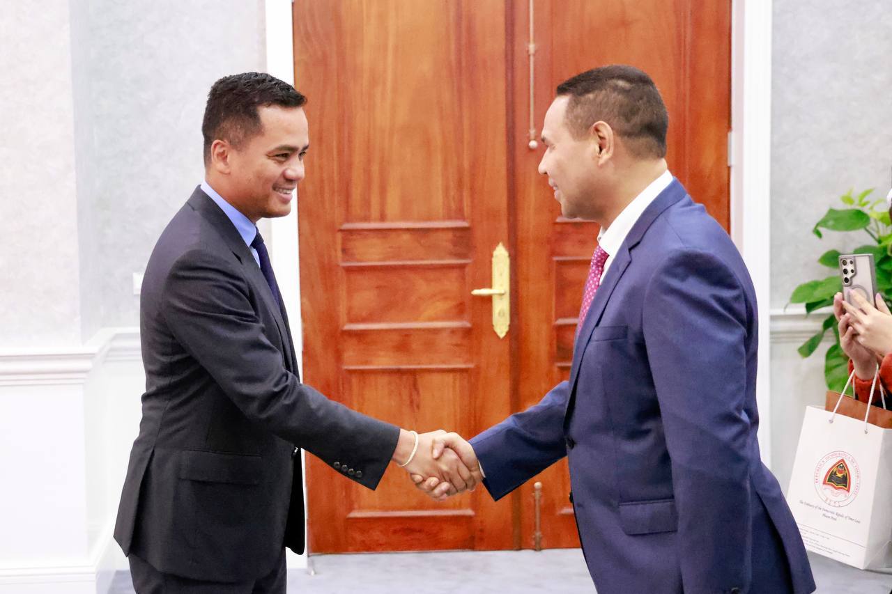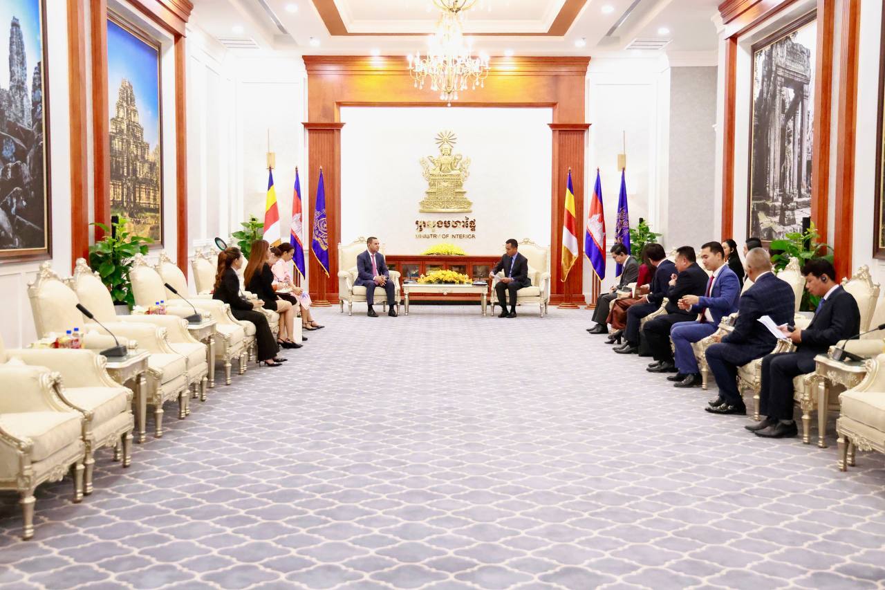 នៅរសៀលថ្ងៃទី២៧ ខែមិថុនា ឆ្នាំ២០២៥ នេះ ឯកឧត្តមអភិសន្តិបណ្ឌិត ស សុខា ឧបនាយករដ្ឋមន្ត្រី រដ្ឋមន្ត្រីក្រសួងមហាផ្ទៃ ទទួលជួបសម្តែងការគួរសម និងជម្រាបលា ជាមួយឯកឧត្តម Ermenegido Kupa Lopes ឯកអគ្គរដ្ឋទូតវិសាមញ្ញ និងពេញសមត្ថភាព នៃសាធារណរដ្ឋប្រជាធិបតេយ្យទីម័រឡេស្តេ ប្រចាំព្រះរាជាណាចក្រកម្ពុជា និងសហការី ក្នុងឱកាសបញ្ចប់បេសកកម្មការទូតនៅកម្ពុជា នៅសាលទទួលភ្ញៀវអន្តរជាតិ នៃទីស្តីការក្រសួងមហាផ្ទៃ។