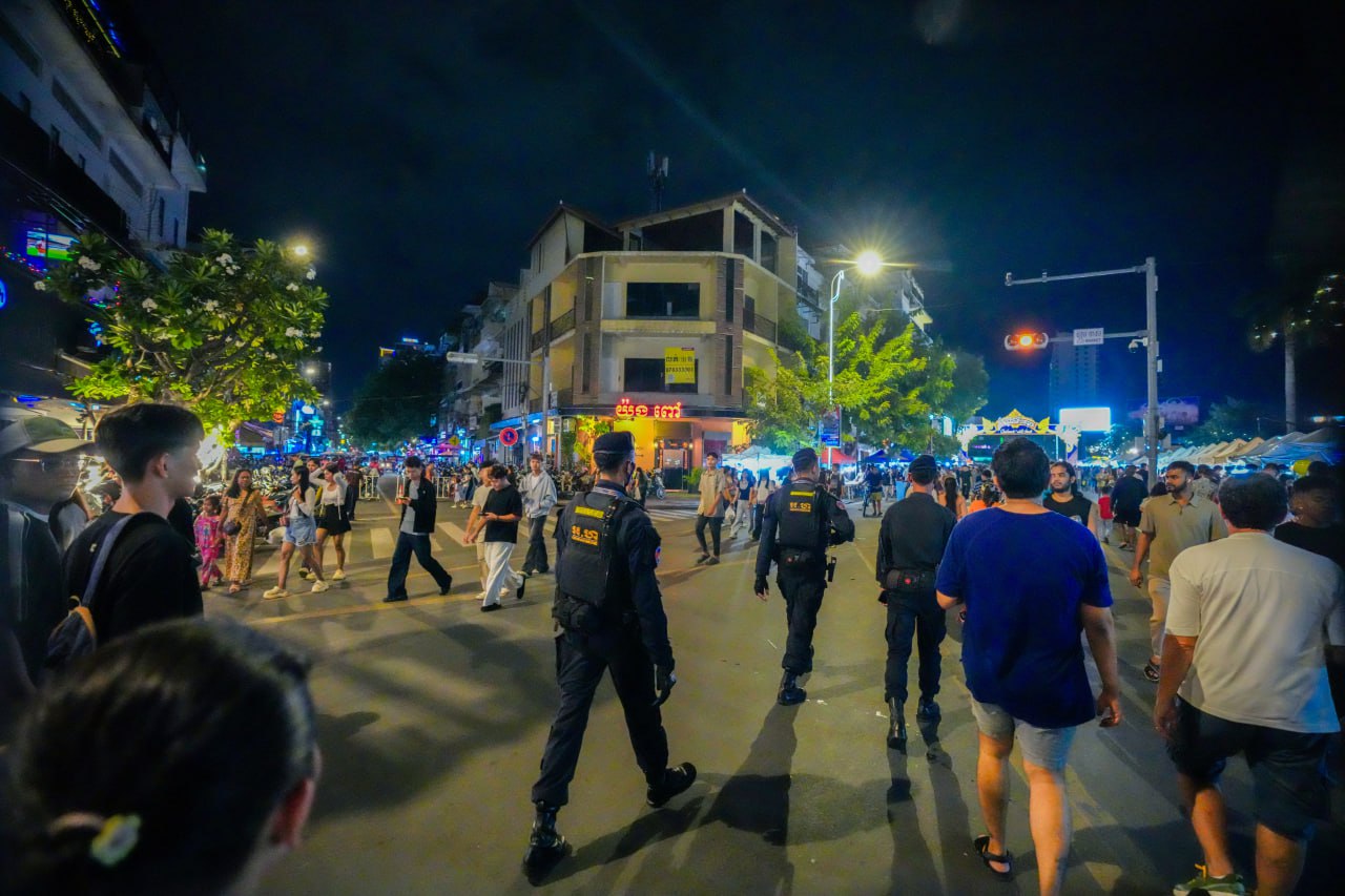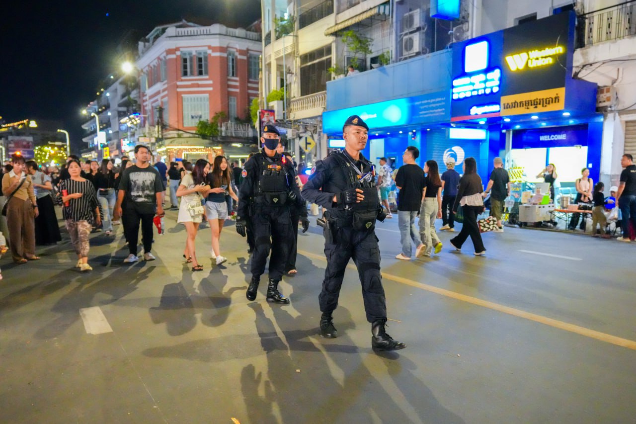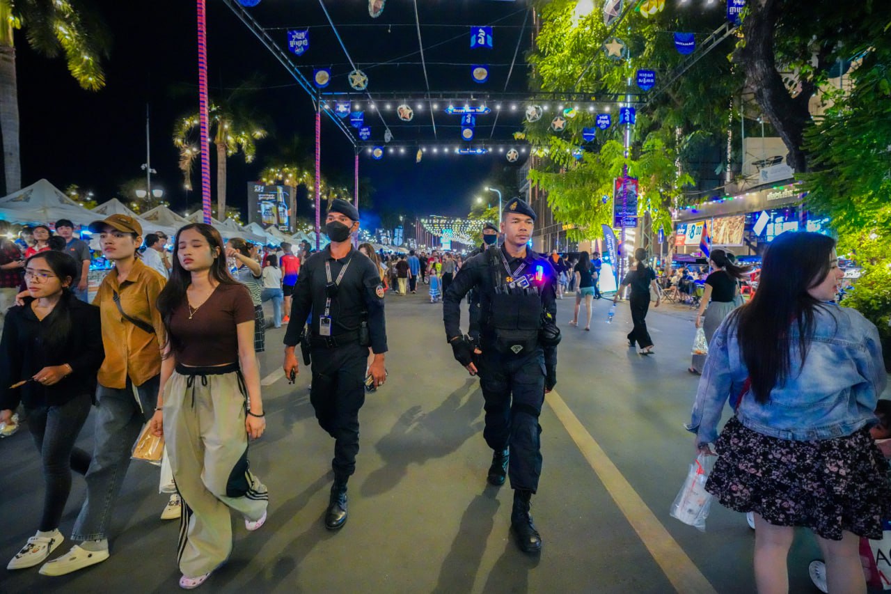 កម្លាំងកងរាជអាវុធហត្ថរាជធានីភ្នំពេញ ចូលរួមល្បាត ការពារសន្តិសុខ សុវត្ថិភាព រក្សាសណ្ដាប់ធ្នាប់ និងសង្គ្រោះបន្ទាន់ ជូនបងប្អូនប្រជាពលរដ្ឋ ធ្វើដំណើរកំសាន្ត នៅតាមដងផ្លូវថ្មើរជើង (Walk Street) ថ្ងៃទី០៦ ខែកញ្ញា ឆ្នាំ២០២៥។
