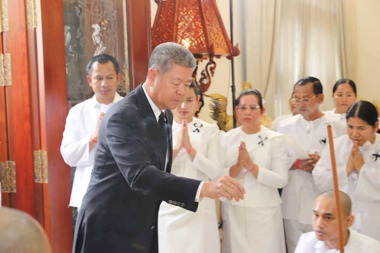 (ខេត្តកណ្តាល)៖ នារសៀលថ្ងៃទី១១ ខែកញ្ញា ឆ្នាំ២០២៥ ឯកឧត្ដម នូ សាខន ប្រធានក្រុមប្រឹក្សាខេត្តកណ្ដាល និង ឯកឧត្ដម គួច ចំរើន អភិបាល នៃគណៈអភិបាលខេត្តកណ្ដាល បានអញ្ជើញដឹកនាំមន្ត្រីនៃរដ្ឋបាលសាលាខេត្តកណ្ដាល គោរពវិញ្ញាណក្ខន្ធ មហាឧបាសិកាពុទ្ធសាសនូបត្ថម្ភក៍ ទិត នារី កាលពីថ្ងៃអង្គារ ២រោច ខែភទ្របទ ឆ្នាំម្សាញ់ សប្ដស័ក ព.ស.២៥៦៩ ត្រូវនឹងថ្ងៃទី៩ ខែកញ្ញា ឆ្នាំ២០២៥ ក្នុងជន្មាយុ៨៨ឆ្នាំ ដោយជរាពាធ ដែលត្រូវជាជីដូនក្មេក-ជីដូនរបស់ភរិយារបស់ឧត្តមសេនីយ៍ទោ ឈឿន សុចិត្ត ស្នងការនគរបាលខេត្តកណ្ដាល។