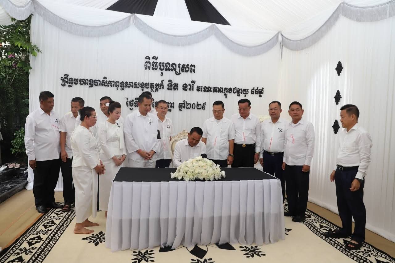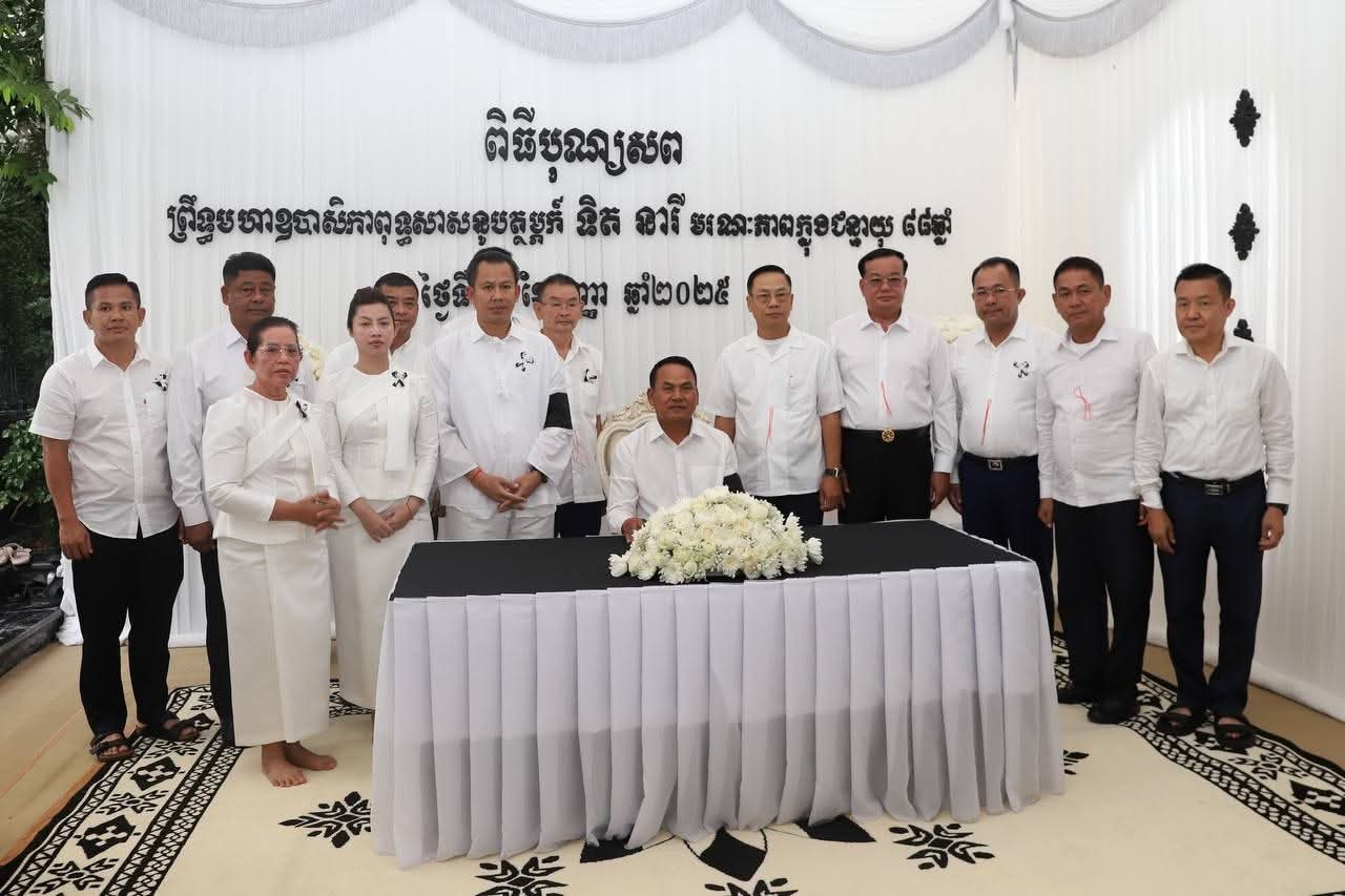 ឯកឧត្តម នាយឧត្តមសេនីយ៍ ស ថេត អគ្គស្នងការនគរបាលជាតិ បានដឹកនាំប្រតិភូអគ្គស្នងការដ្ឋាននគរបាលជាតិ គោរពវិញ្ញាណក្ខន្ធសពព្រឹទ្ធមហាឧបាសិកាពុទ្ធសាសនូបត្ថម្ភក៍ ទិត នារី ត្រូវជាជីដូនក្មេករបស់លោកឧត្តមសេនីយ៍ទោ ឈឿន សុចិត្ត ស្នងការនគរបាលខេត្តកណ្តាល ដែលបានទទួលមរណភាពកាលពីថ្ងៃអង្គារ ២រោច ខែភទ្របទ ឆ្នាំម្សាញ់ សប្តស័ក ព.ស.២៥៦៩ ត្រូវនឹងថ្ងៃទី០៩ ខែកញ្ញា ឆ្នាំ២០២៥ វេលាម៉ោង១១:២៦នាទីព្រឹក ក្នុងជន្មាយុ៨៨ឆ្នាំ ដោយជរាពាធ។