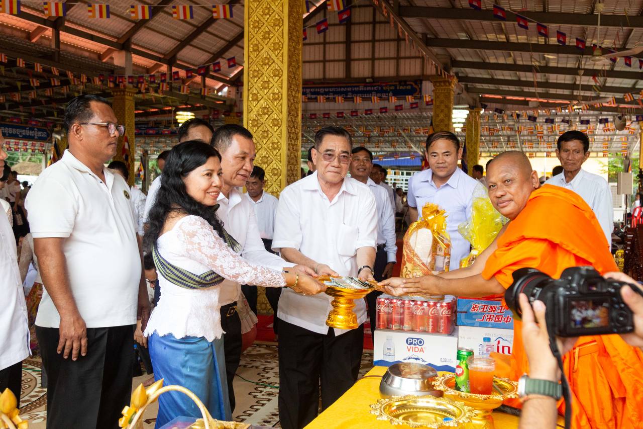 ក្នុងឱកាសនោះ ឯកឧត្តម អ៊ូ វណ្ណា និងលោកជំទាវ ព្រមទាំងក្រុមការងារ ក៏បាននាំបច្ច័យរបស់ឯកឧត្តមអភិសន្តិបណ្ឌិត និងលោកជំទាវ ចំនួន ៣១ ០៧០ ០០០រៀល(សាមសិបមួយលាន ប្រាំពីរម៉ឺនរៀល) អង្ករ ចំនួន ៥តោន មី ចំនួន ១០០កេស ទឹកបរិសុទ្ធ ចំនួន ១០០កេស និងទឹកក្រូច ចំនួន ១០០កេស ប្រគេនដល់ព្រះសង្ឃ សម្រាប់ចូលរួមកសាងហេដ្ឋារចនាសម្ព័ន្ធ និងផ្គត់ផ្គង់ចង្ហាន់ព្រះសង្ឃក្នុងវត្តត្រពាំងគល់ ផងដែរ៕