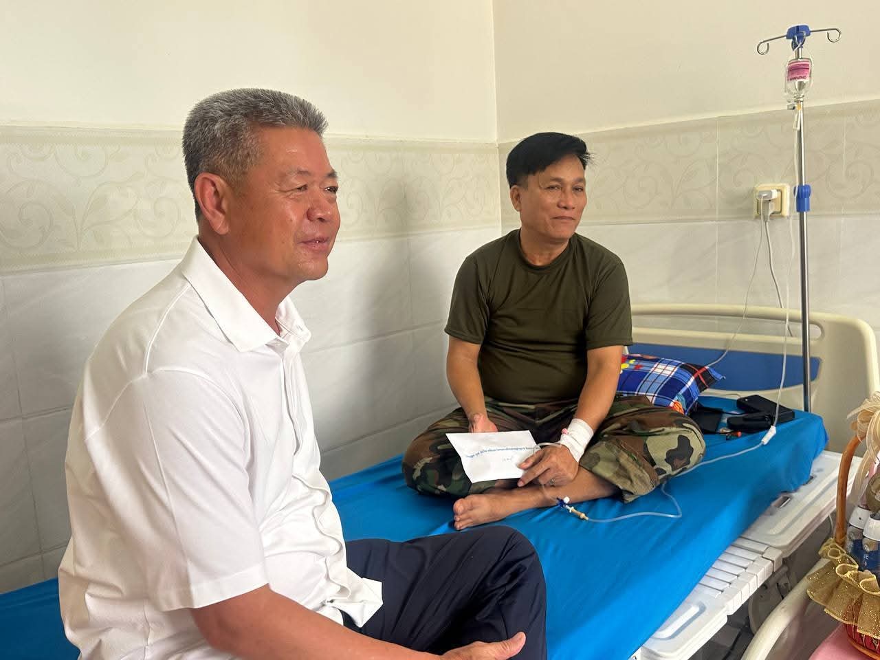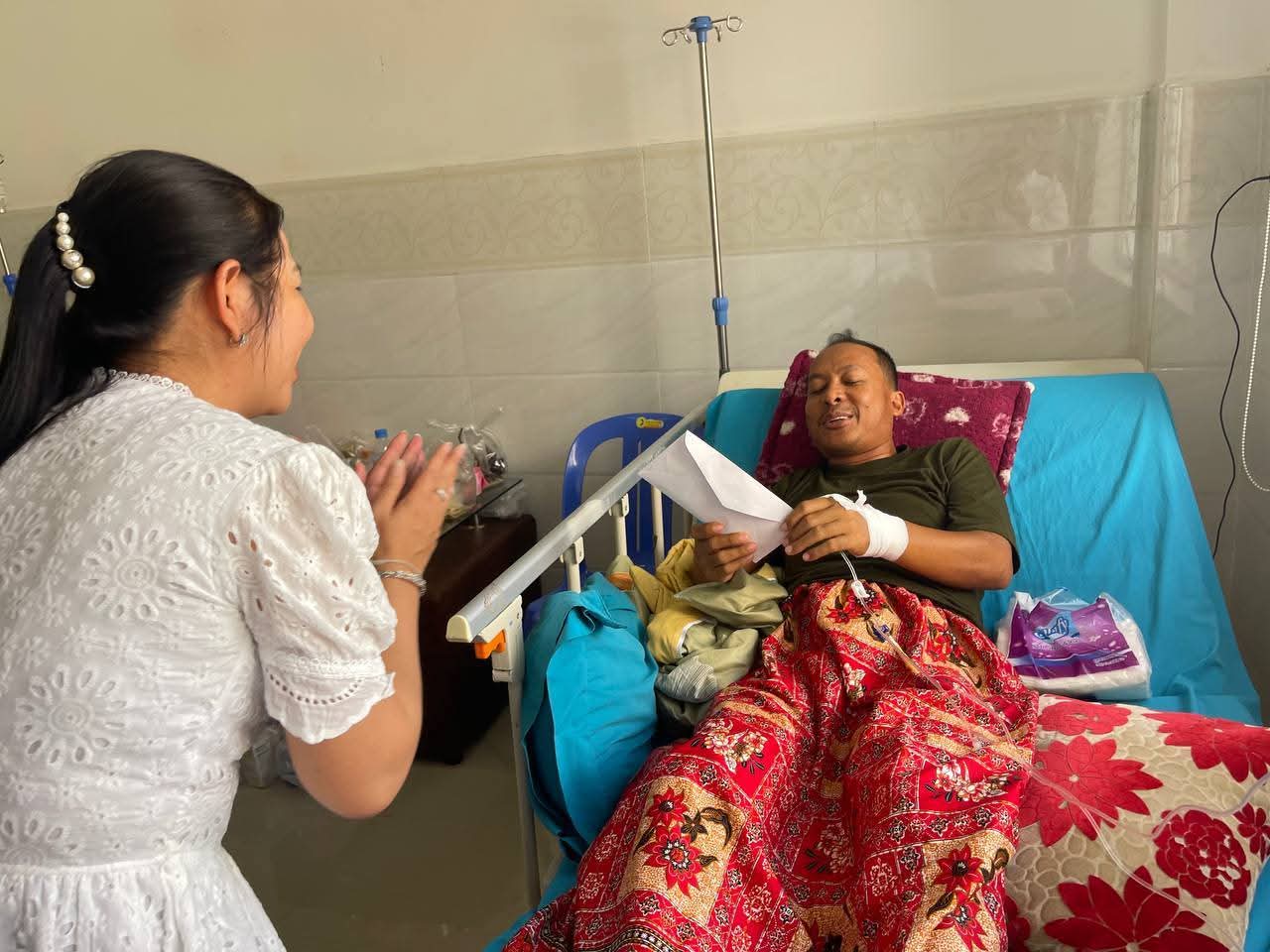 ព្រឹកថ្ងៃទី២០ ខែកញ្ញា ឆ្នាំ២០២៥ ឯកឧត្តម គួច ចំរើន អភិបាល នៃគណៈអភិបាលខេត្តកណ្ដាល អញ្ជើញសួរសុខទុក្ខនិងនាំយកថវិកា របស់សម្ដេចមហាបវរធិបតី ហ៊ុន ម៉ាណែត នាយករដ្ឋមន្ត្រី នៃព្រះរាជាណាចក្រកម្ពុជា និងលោកជំទាវបណ្ឌិត ផ្ដល់ជូន វីរៈកងទ័ព ប្រចាំសមរភូមិមុខ ចំនួន ២ នាក់ កំពុងសម្រាកព្យាបាលនៅមន្ទីរពេទ្យព្រះកេតុមាលា ស្ថិតនៅរាជធានីភ្នំពេញ។
