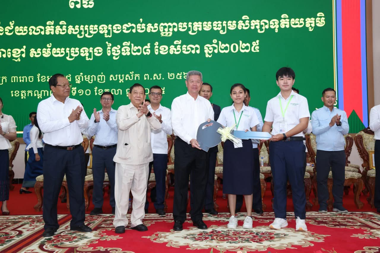 សិស្សប្រឡងជាប់និទ្ទេស A សញ្ញាបត្រមធ្យមសិក្សាទុតិយភូមិ ឆ្នាំ២០២៥ ចំនួន៨០នាក់ នៅក្រុងតាខ្មៅ ទទួលបានម៉ូតូម្នាក់មួយគ្រឿងពីរដ្ឋបាលខេត្តកណ្ដាល