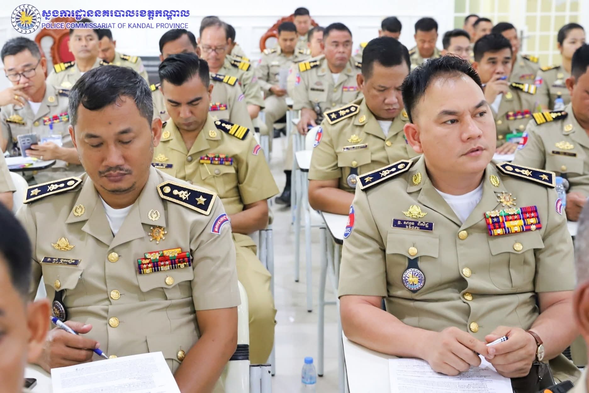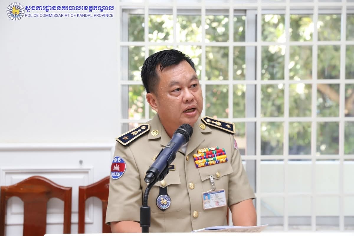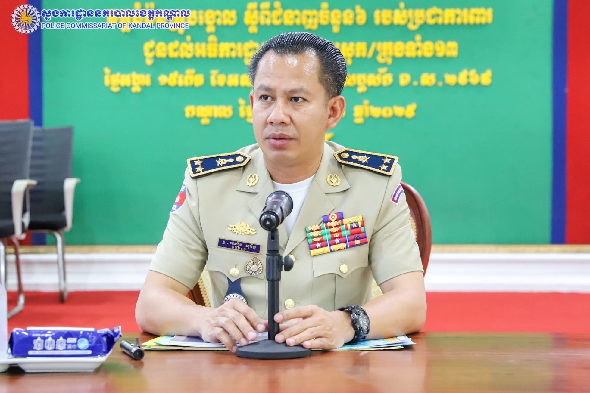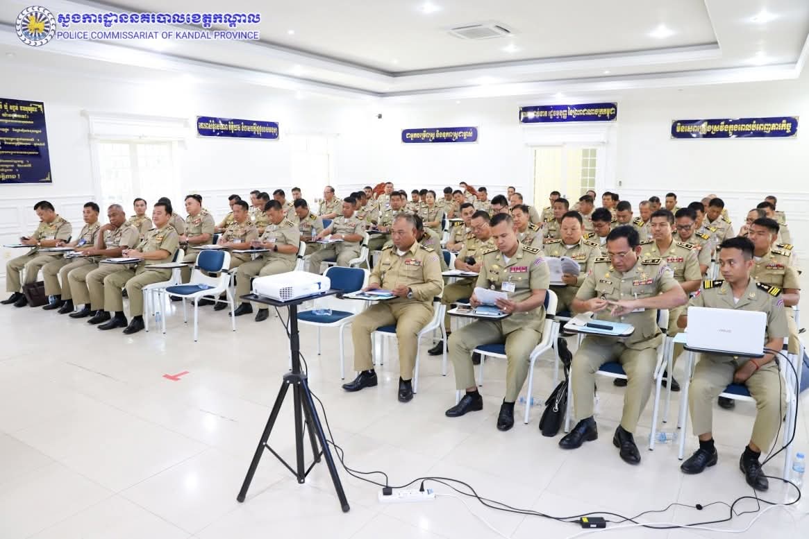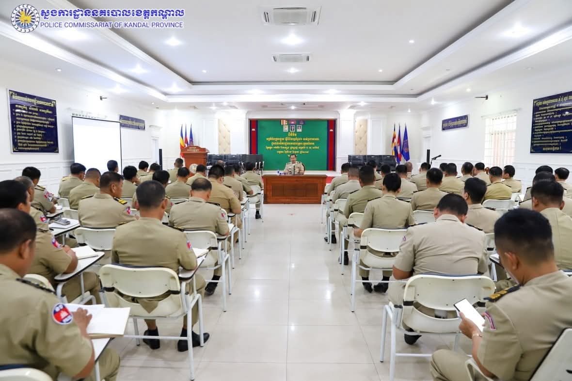 ដោយអនុវត្តតាមការដឹកនាំបញ្ជាដ៏ខ្ពង់ខ្ពស់របស់ ឯកឧត្តម នាយឧត្តមសេនីយ៍ ស ថេត អគ្គស្នងការនគរបាលជាតិ និង ឯកឧត្តម គួច ចំរើន អភិបាល នៃគណៈអភិបាលខេត្តកណ្តាល លោកឧត្តមសេនីយ៍ទោ ឈឿន សុចិត្ត ស្នងការនគរបាលខេត្តកណ្តាល បានអញ្ជើញជាអធិបតីដឹកនាំកិច្ចប្រជុំនៅសាលប្រជុំស្នងការដ្ឋាននគរបាលខេត្តកណ្តាល ដើម្បីផ្សព្វផ្សាយនិងអនុវត្តផែនការសហការ ការពារសន្តិសុខ សណ្តាប់ធ្នាប់ និងសុវត្ថិភាព ក្នុងឱកាសប្រារព្ធពិធីសម្ពោធបើកឲ្យប្រើប្រាស់ជាផ្លូវការ អាកាសយានដ្ឋានអន្តរជាតិតេជោ