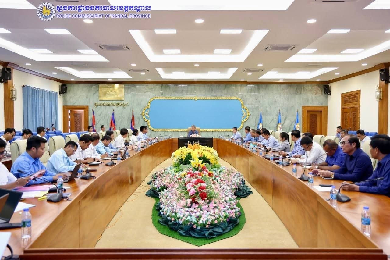 លោកឧត្តមសេនីយ៍ទោ ឈឿន សុចិត្ត ស្នងការនគរបាលខេត្តកណ្តាល បានអញ្ជើញចូលរួមក្នុងកិច្ចប្រជុំស្តាប់របាយការណ៍ត្រៀមចូលរួមកិច្ចប្រជុំបូកសរុបលទ្ធផលកិច្ចសហប្រតិបត្តិការ៦ខែដើមឆ្នាំ២០២៥ និងទិសដៅអនុវត្តបន្តសម្រាប់ឆ្នាំបន្ទាប់រវាងរដ្ឋបាលខេត្តកណ្តាល និងគណៈកម្មាធិការប្រជាជនខេត្តអានយ៉ាង ក្រោមអធិបតីភាពដ៏ខ្ពង់ខ្ពស់ ឯកឧត្តម គួច ចំរើន អភិបាល នៃគណៈអភិបាលខេត្តកណ្តាល នៅសាលប្រជុំរដួល ស្ថិតនៅភូមិកោះគរ សង្កាត់រកាខ្ពស់ ក្រុងតាខ្មៅ ខេត្តកណ្តាល។
