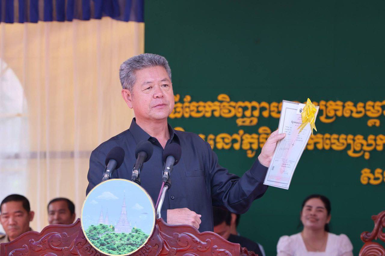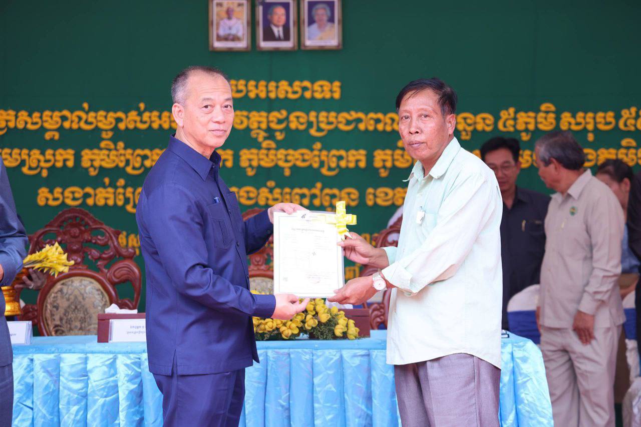 ឯកឧត្តមមាន ច័ន្ទវ៉ាន់នី អនុរដ្ឋលេខាធិការក្រសួងរៀបចំដែនដី នគរូបនីយកម្ម និងសំណង់ និងឯកឧត្តម គួច ចំរើន អភិបាលនៃគណៈអភិបាលខេត្តកណ្តាល បានអញ្ជើញជាអធិបតី ក្នុងពិធីចែកវិញ្ញាបនបត្រសម្គាល់ម្ចាស់អចលនវត្ថុចំនួន ៥,៥៥៣ប័ណ្ណ ជូនបងប្អូនប្រជាពលរដ្ឋ នៅ ៥ភូមិ ដែលមានភូមិចុងមេស្រុក,ភូមិព្រែកលោក,ភូមិចុងព្រែក,ភូមិព្រែកតាមេម និងភូមិចាស់ សង្កាត់ព្រែកស្តី ក្រុងសំពៅពូន ខេត្តកណ្ដាល។