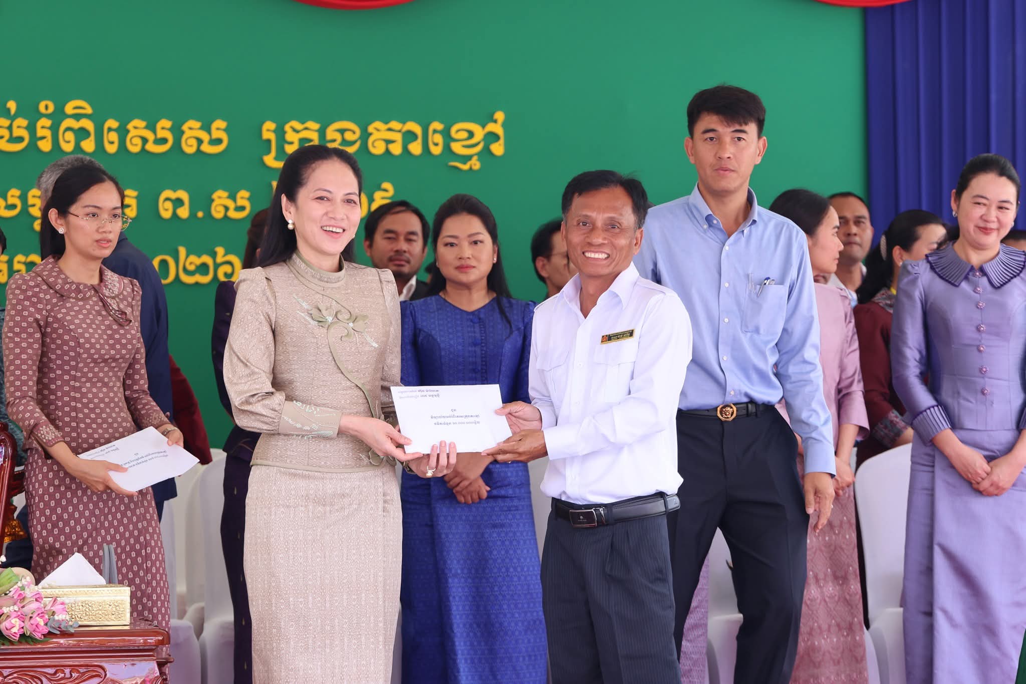 ខេត្តកណ្តាល៖ ព្រឹកថ្ងៃទី២០ ខែមករា ឆ្នាំ២០២៦នេះ ឯកឧត្ដម នូ សាខន ប្រធានក្រុមប្រឹក្សាខេត្តកណ្ដាល និងលោកជំទាវ និងឯកឧត្ដម គួច ចំរើន អភិបាល នៃគណៈអភិបាលខេត្តកណ្ដាល និងលោកជំទាវ អញ្ជញចូលរួមក្នុងពិធីសម្ពោធអាគារសិក្សាអប់រំពិសេសក្រុងតាខ្មៅ ខេត្តកណ្តាល ក្រោមអធិបតីភាពដ៏ខ្ពង់ខ្ពស់លោកជំទាវបណ្ឌិត ពេជ ចន្ទមុន្នី ហ៊ុន ម៉ាណែត ស្រ្តីទី១ នៃព្រះរាជាណាចក្រកម្ពុ។