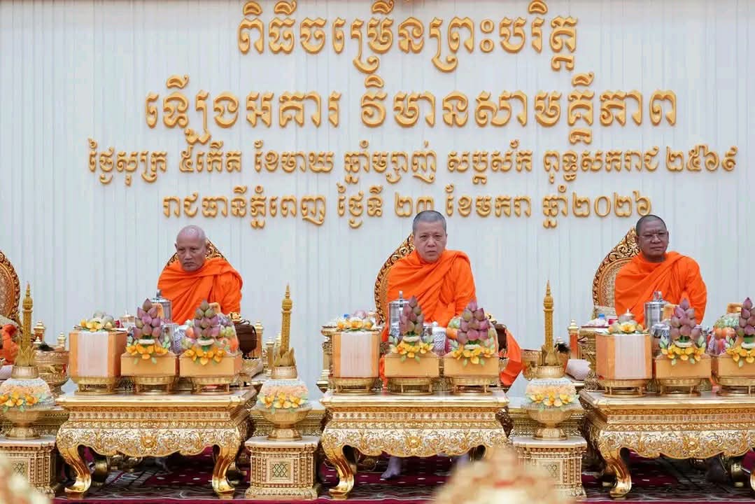 (ភ្នំពេញ)៖ នៅព្រឹកថ្ងៃសុក្រ ទី២៣ ខែមករា ឆ្នាំ២០២៦នេះ សម្តេចតេជោ ហ៊ុន សែន ប្រធានព្រឹទ្ធសភាកម្ពុជា និងសម្តេចកិត្តិព្រឹទ្ធបណ្ឌិត ប៊ុន រ៉ានី ហ៊ុនសែន ប្រធានកាកបាទក្រហមកម្ពុជា បានអញ្ជើញសូត្រមន្តក្រុងពាលីចម្រើនព្រះបរិត្តសុំសេចក្តីសុខសេចក្តីចម្រើនឡើងអគារថ្មីព្រឹទ្ធសភាកម្ពុជា ដែលទើបសាងសង់រួចរាល់។