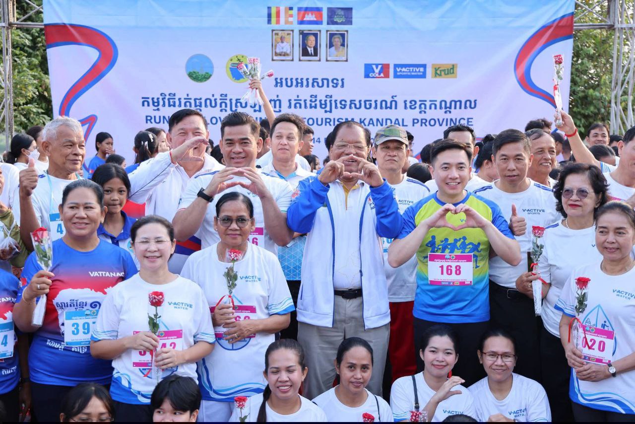 ខេត្តកណ្តាល៖ ព្រឹកថ្ងៃទី១៤ ខែកុម្ភៈ ឆ្នាំ២០២៦នេះ រដ្ឋបាលខេត្តកណ្ដាល បានរៀបចំព្រឹត្តិការណ៍រត់អបអរសាទរទិវា នៃក្តីស្រឡាញ់១៤ ខែកុម្ភៈ ឆ្នាំ២០២៦ នៅសួនច្បារមាត់ទន្លេ ក្រុងតាខ្មៅ ក្រោមធិបតីភាព ឯកឧត្តម នូ សាខន ប្រធានក្រុមប្រឹក្សាខេត្ត និងឯកឧត្តម គួច ចំរើន អភិបាល នៃគណៈខេត្តកណ្តាល ដោយមានការអញ្ជើញចូលរួមពីសំណាក ឯកឧត្តម លោកជំទាវសមាជិកក្រុមប្រឹក្សាខេត្ត អភិបាលរងខេត្ត និងមន្ទីរពាក់ព័ន្ធ។