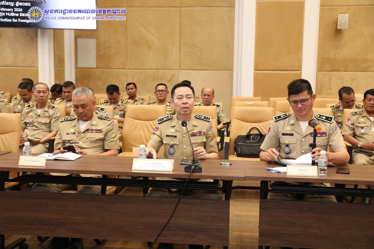 ស្នងការរង និងលោកឧត្តមសេនីយ៍ត្រី តុប សុវណ្ណ ជាតំណាងចូលរួមកិច្ចប្រជុំប្រចាំខែកុម្ភៈ ឆ្នាំ២០២៦ របស់ក្រុមព័ត៌មានទាន់ហេតុការណ៍ (HOTLINE) ជាមួយជនបរទេស ប្រចាំនៅព្រះរាជាណាចក្រកម្ពុជា ក្រោមអធិបតីភាព ឯកឧត្ដម ឧត្ដមសេនីយ៍ឯក ជា ពៅ អគ្គស្នងការរងនគរបាលជាតិ តំណាងដ៏ខ្ពង់ខ្ពស់ ឯកឧត្តម នាយឧត្តមសេនីយ៍ ស ថេត អគ្គស្នងការនគរបាលជាតិ នៅសាលប្រជុំនៃទីស្តីការ ក្រសួងមហាផ្ទៃ។