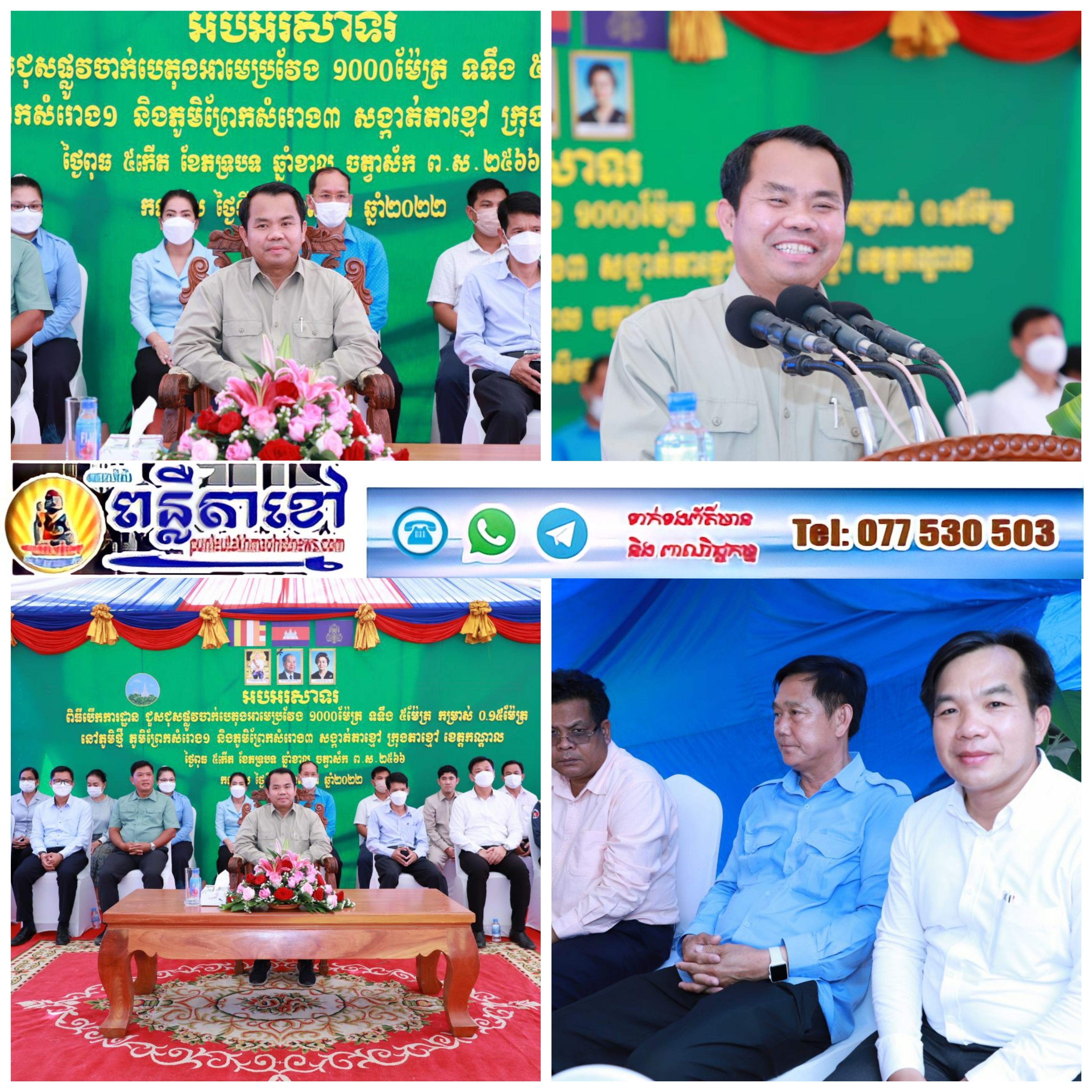 ខេត្តកណ្ដាល៖ ពិធីបើកការដ្ឋាន ជួសជុលផ្លូវចាក់បេតុងអាមេ ប្រវែង ១០០០ម៉ែត្រ ទទឹង៥ម៉ែត្រ កម្រាស់ ០.១៥ម៉ែត្រ នៅភូមិថ្មី ភូមិព្រែកសំរោង១ និងភូមិព្រែកសំរោង៣ សង្កាត់តាខ្មៅ ក្រុងតាខ្មៅ ត្រូវបានបើកការដ្ឋានសាងសង់ ក្រោមអធិបតីភាពឯកឧត្តម គង់ សោភ័ណ្ឌ អភិបាល នៃគណៈអភិបាលខេត្តកណ្ដាលនា រសៀលថ្ងៃទី៣១ ខែសីហា ឆ្នាំ២០២២។