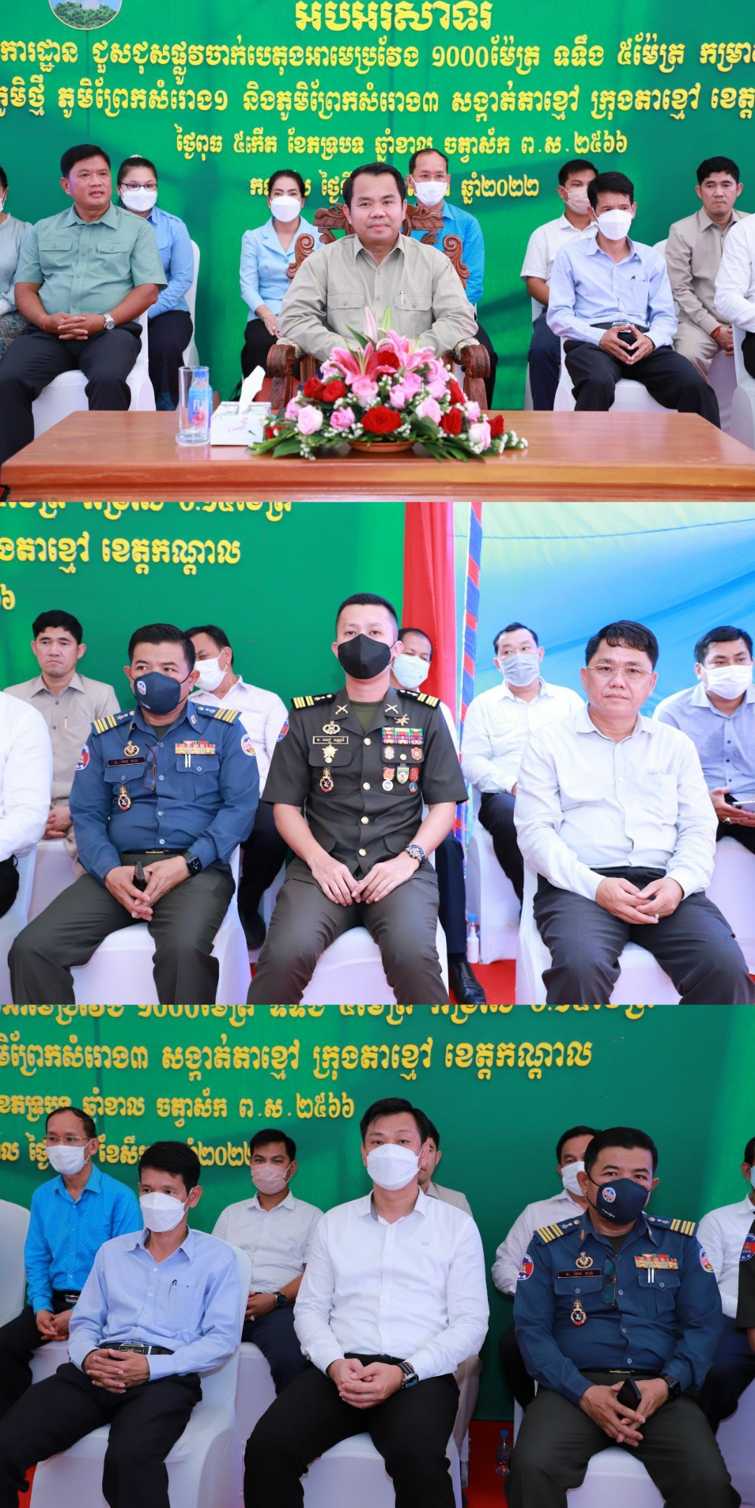 មានប្រសាសន៍ក្នុងពិធីបើកការដ្ឋានសាងសង់ផ្លូវបេតុងនេះដែរ ឯកឧត្តម គង់ សោភ័ណ្ឌ អភិបាលខេត្តកណ្ដាល បានមានប្រសាសន៍ថា៖ ក្រោមបរិយាកាសសុខសន្តិភាព ស្ថិរភាពនយោបាយ នៃការដឹកនាំប្រទេសរបស់ សម្ដេចអគ្គ មហារសេនាបតីតេជោ ហ៊ុន សែន នាយករដ្ឋមន្ត្រី នៃព្រះរាជាណាចក្រកម្ពុជា ប្រកបដោយគតិបណ្ឌិត បានដឹកនាំគោលនយោបាយឈ្នះ-ឈ្នះ បង្រួបបង្រួមជាតិ និងការសង្គ្រោះជីវិតរបស់ប្រជាពលរដ្ឋយ៉ាងអង់អាចក្លាហាន ក្នុងការចូលរួមផ្តួលរំលំរបប ប៉ុលពត ការចចារបញ្ចប់សង្គ្រាមស៊ីវិលរ៉ាំរ៉ៃ និងបាននាំមកឱ្យប្រទេសជាតិនូវការអភិវឌ្ឍរីកចំរើនឥតឈប់ឈរ មានស្ថិរភាព មានសន្តិភាពពិតប្រាកដ និងធ្វើឱ្យប្រជាពលរដ្ឋមានភាពសុខសាន្ត មានជីវភាពរស់នៅសមរម្យ តាមរយៈការកសាងហេដ្ឋារចនាសម្ព័ន្ធ ផ្លូវ ស្ពាន សាលារៀន វត្តអារាម មន្ទីរពេទ្យ មណ្ឌលសុខភាព ប៉ុស្តិ៍សុខភាពជាដើម។