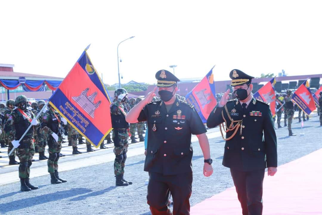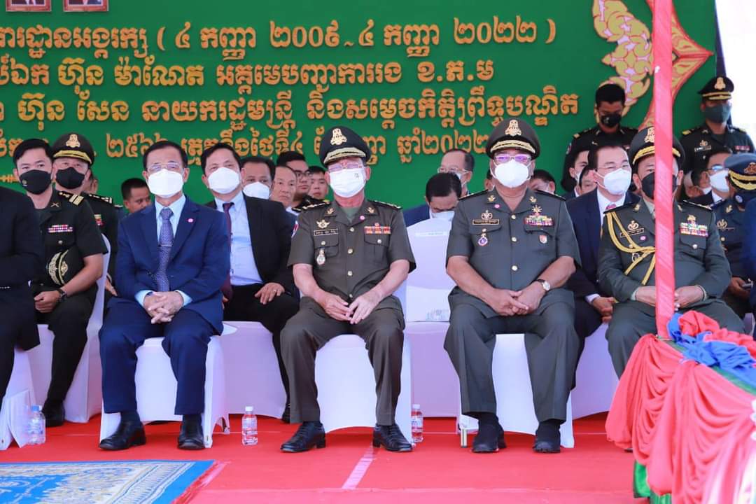 ជើងគោក តំណាងដ៏ខ្ពង់ខ្ពស់ សម្ដេចអគ្គមហាសេនាបតីតេជោ នាយឧត្តមសេនីយ៍ផ្កាយមាស៥ផុតលេខ ហ៊ុន សែន នាយករដ្ឋមន្ត្រី នៃព្រះរាជាណាចក្រកម្ពុជា និងសម្ដេចកិត្តិព្រឹទ្ធបណ្ឌិត ប៊ុន រ៉ានី ហ៊ុន សែន ប្រធានកាកបាទក្រហមកម្ពុជា នៅទីបញ្ជាការដ្ឋានអង្គរក្ស(ទួលក្រសាំង) ស្ថិតនៅក្រុងតាខ្មៅ ខេត្តកណ្ដាល” ។