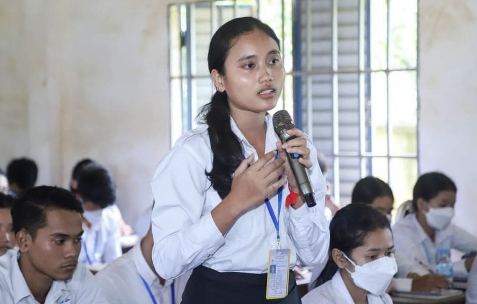 លោក កន សុខកាយ អភិបាលនៃគណៈអភិបាលស្រុកល្វាឯម អញ្ជើញជាអធិបតីភាពក្នុងការចែករំលែកបទពិសោធន៍ទៅប្អូនៗសិស្សថ្នាក់ទី១២..